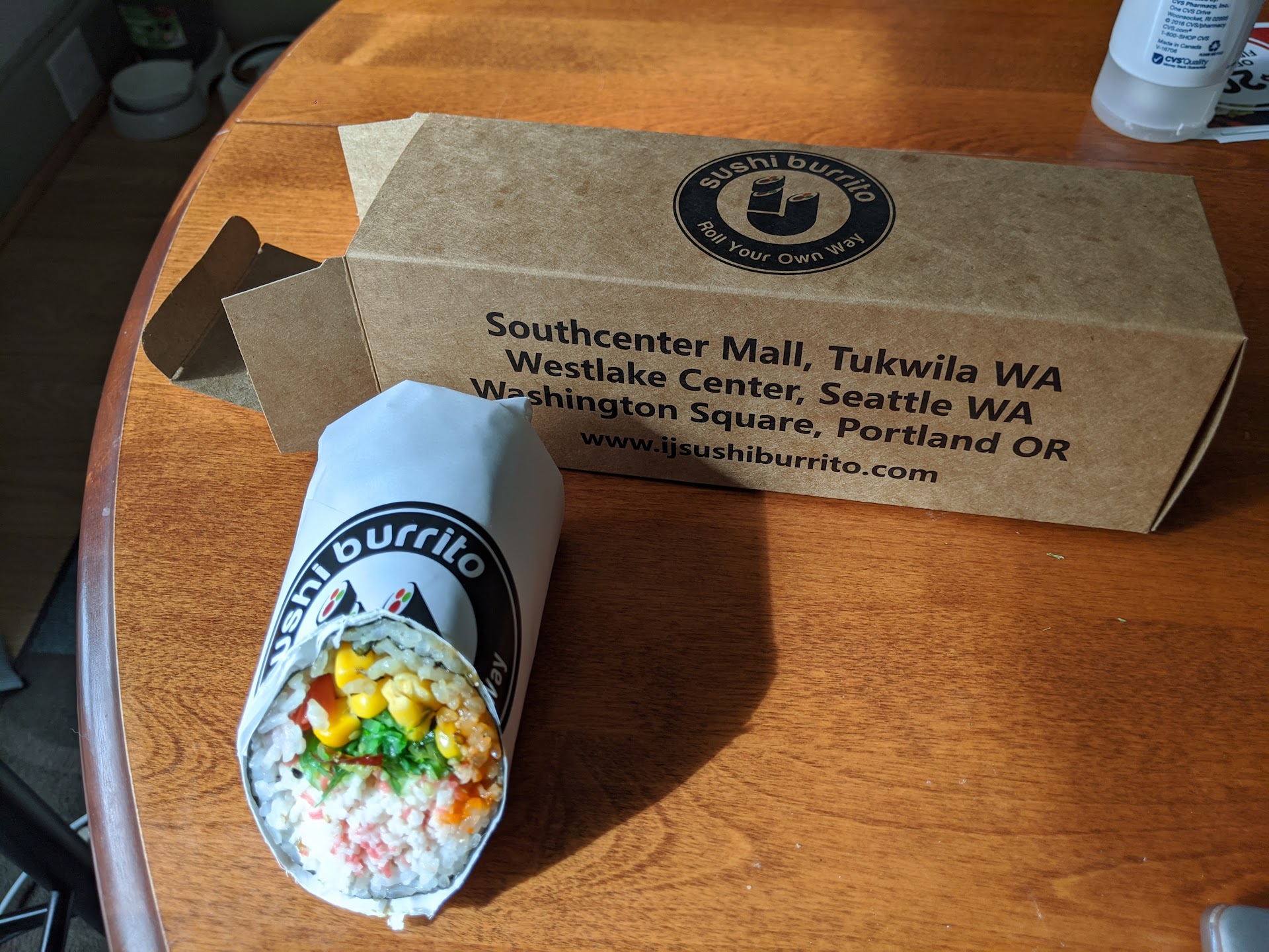 Any sushi burrito can also be made as a salad or poke bowl, but then you won't get the amusing cardboard...