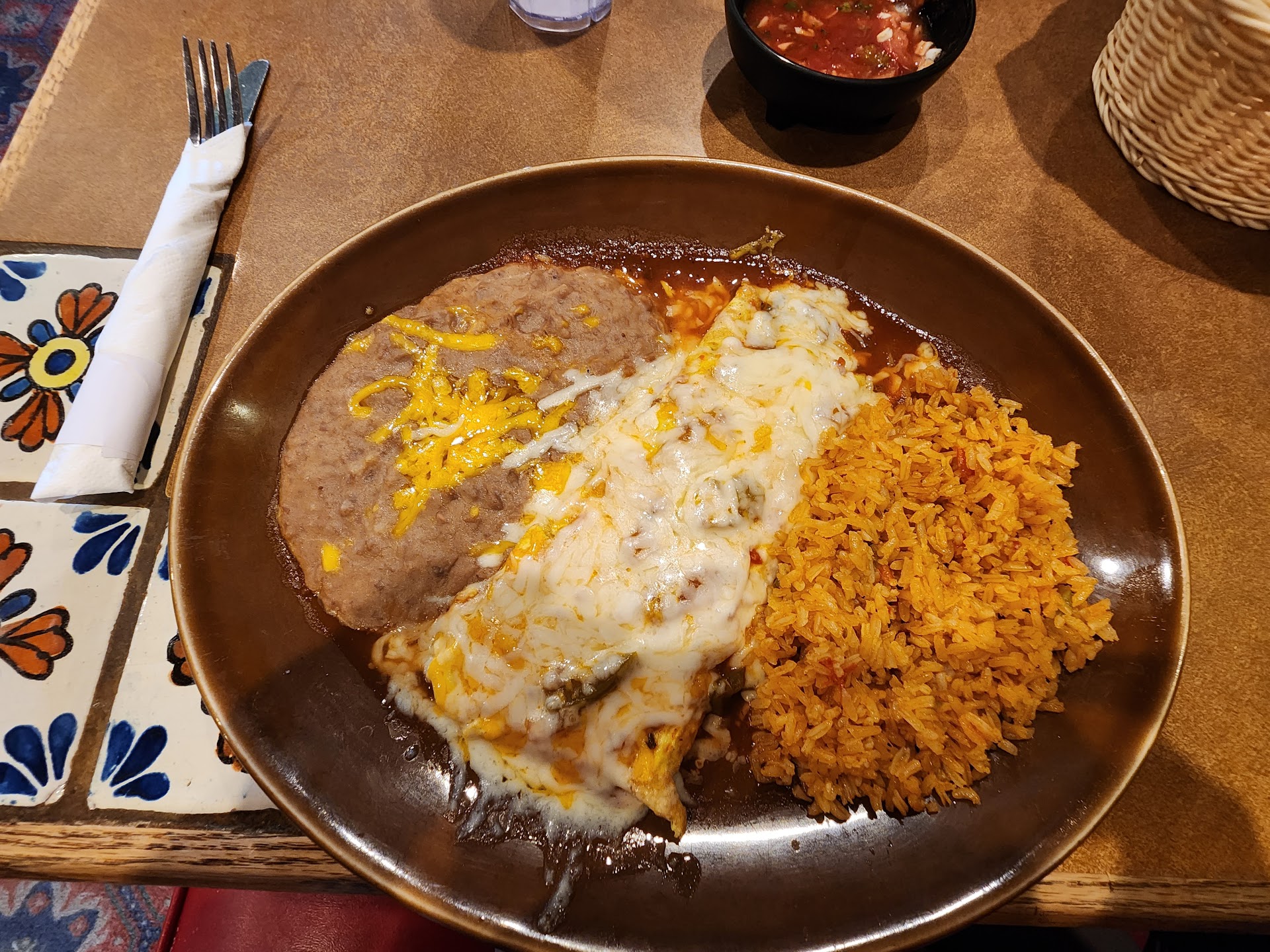 Ā Ā Ā Read moreJanuary 1st my Boyfriend and I stopped in for a late dinner. After waiting to be seated for an uncomfortable amount of time, I found a woman setting a table in the dining room. I asked "are you open"? She apologized for the wait, and motioned for us to follow her. Once seated she brought water, chips & salsa as well as the BEST Pico we had ever had! A tall man asked if we'd like something from the Bar? I ordered a Strawberry Margarita. We waited again, this time for a Menu & of course my Strawberry Margarita...long enough this time to have finished our chips and water, a first. I'll spare you the drama! Our meals were actually very good, I happened to catch the tall man's attention, reminded him of my drink, 3/4s of the way thru dinner I was served my Strawberry Margarita. In a hot glass! Bummed out about the poor service. I will share the experience of course. Not decided if we...