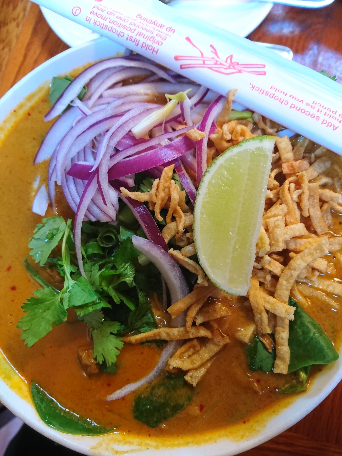 Read moreI wanted to love this place, as it's in the neighborhood, and I love Thai food. I have to say I was underwhelmed. It was just ok. We each ordered and appetizer and a main course. My appetizer arrives shortly later, with a promise that the other would be right out. What felt like it would be a wait of a couple minutes turned into about 20. The other appetizer actually arrived right after the entrees! On the plus side, the servers were very apologetic. Portion size here is larger than I am used to, so you definitely feel like you are getting your money's worth. But, my dining companion said his beef entree was bland, and he didn't seem too excited about the chicken appetizer either. My appetizer (fresh roll) was good - not spectacular, but very fresh. Just what I expect. The entree (chicken with spinach in a creamy lime sauce) was unusual - not my normal choice but I wanted to try something different. It had good flavor though the chicken seemed a tad overcooked, almost tough. I noticed the same with the chicken satay appetizer my friend had ordered. I'll definitely give them another try. It was clear with how busy they were on a Tuesday evening that this place has its fans. I'd like to be one too, just not...