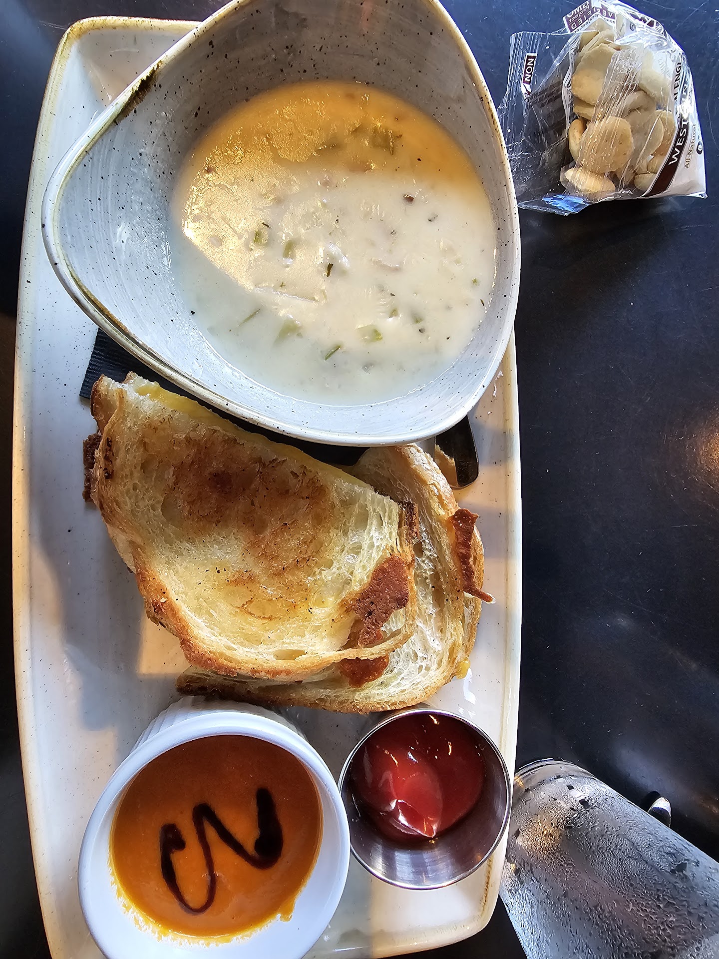 Read moreOver priced for an extremely small piece of salmon, that was undercooked. The waiter was a good sales person, telling us that he eats it like that all the time, just like tuna. Well we didn’t buy it and had them take it back to be recooked. Unfortunately my husband got sick that night. OverAll this place was bland. If you are drunk then maybe your tastebuds are too numb to know the difference. Overpriced for very lazy meal options. Burger was dry, and hard around the edges as if it was frozen prior to prep. Since when does Caesar salad need salt?? Or better yet, Why was my Mac’N Cheese sour. Ughh and to top it off, My fried dark meat chicken was soaking in oil. Unfortunately we had no other choice but to swallow the $90 bill and learn from this experience. It looks flashy & makes plenty of business considering it’s location near the stadium. Something has to change, I just don’t know what? (Maybe make everything taste as flavorful as my drink or your garlic fries) The best thing I had was a Raspberry...