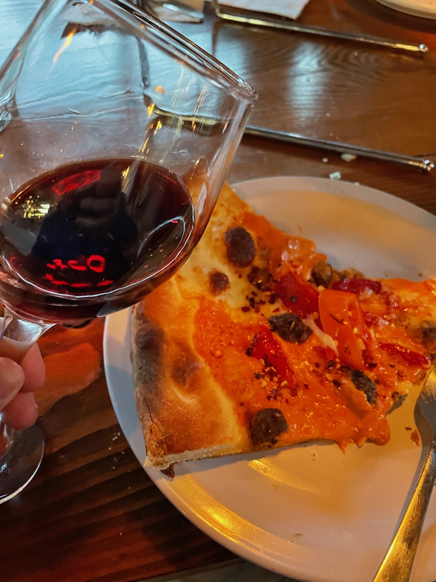 The salad was great, the caprese was great, the pan cookie with vanilla ice cream was great, the bottle of wine was great, the ambiance and vibe was great but above all.....the service was fantastic! Our server was attentive and always on time, spending time with our table conversing about the spot while paying attention to the other tables and taking phone orders! He also monitored our meal and brought our food out as we were ready for the next course. And here's the capper, he brought us new plates for the pizza so we didn't have use our vinegarette soaked plates! Check mate!