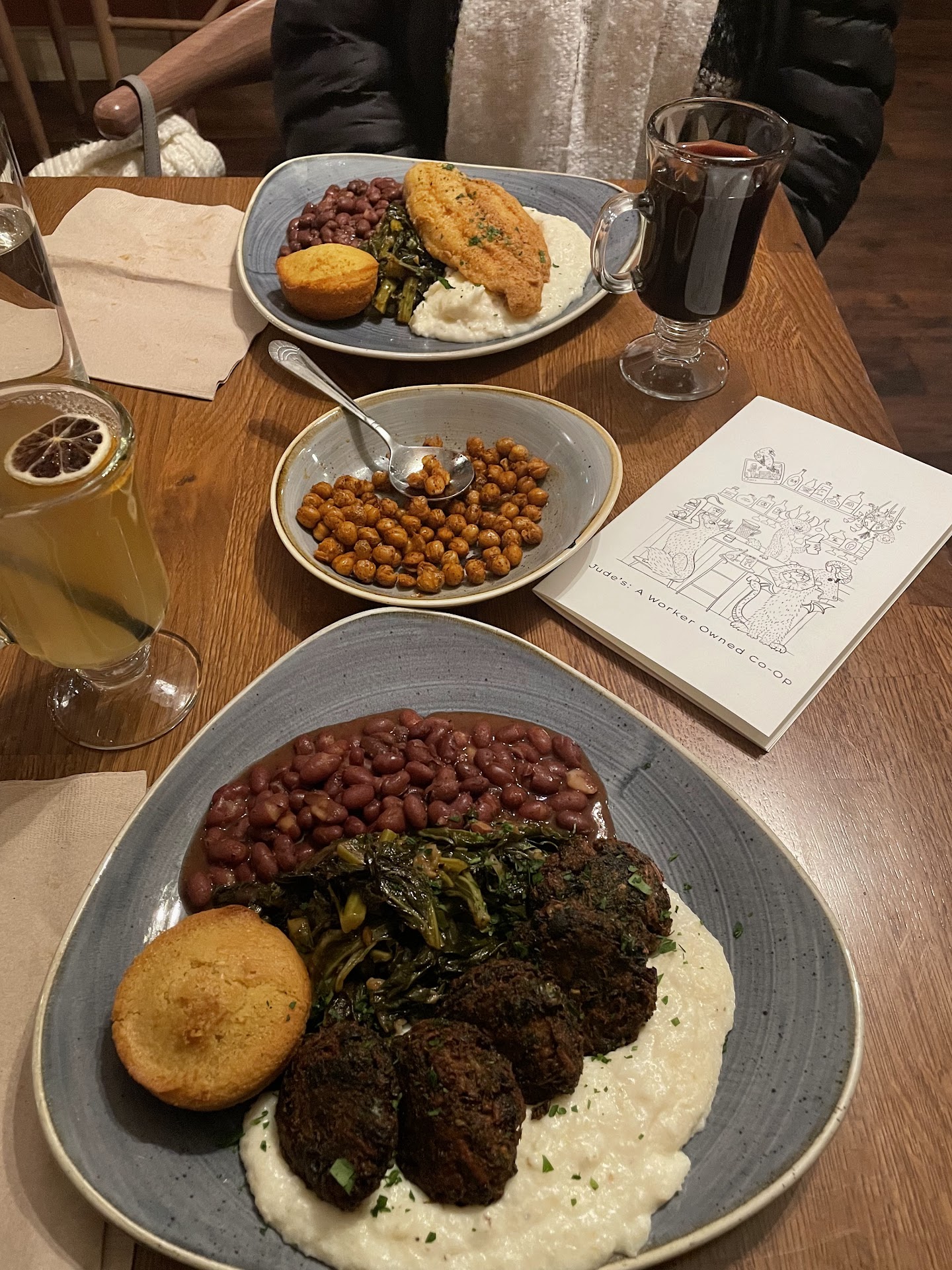 Read moreI really wanted to love this place. I always pass by here when I take my dog for a walk. I always see them doing amazing community outreach stuff and donating food to families in need. I finally decided to check it out and it was rather crowded and busy so I decided to place a to-go order. However, because it was taking so long I decided to order a drink while I was waiting. An hour and a half later my food was ready. To add insult to injury my bill for a burger, 3 sides, and a drink came out to $80 not including tip. I wasn’t really even upset about it; mostly surprised. However, I didn’t want to address it because the staff was really nice and I felt embarrassed about it knowing that the money was going towards a good cause. That changed once I got home though. My hush puppies were wet, burnt, salty, and chewy (it felt like eating a salty sponge). My burger was cold and the bottom bun was beyond soggy; it was starting to disintegrate. The greens and red beans and rice both tasted salty and vinegary. Overall I was tremendously disappointed, but I’m giving them 2 stars because I like the aesthetic and I appreciate that they’re giving back and helping...
