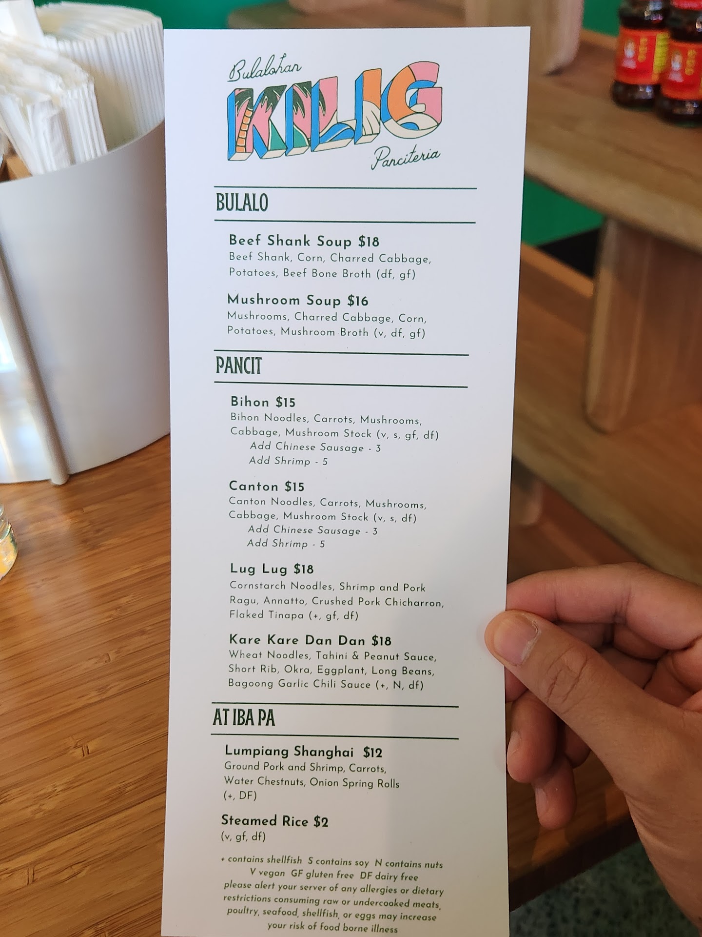 We ordered the bulalo, pancit lug lug and a cup of rice to share. Service was quick, wife's kimlet cocktail was really good and my San Miguel beer was ice cold. Also, cute interior. That's about it.