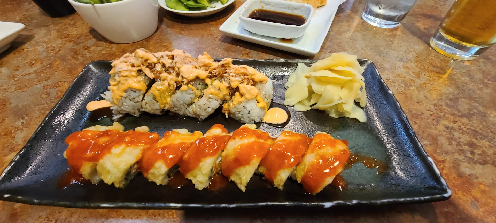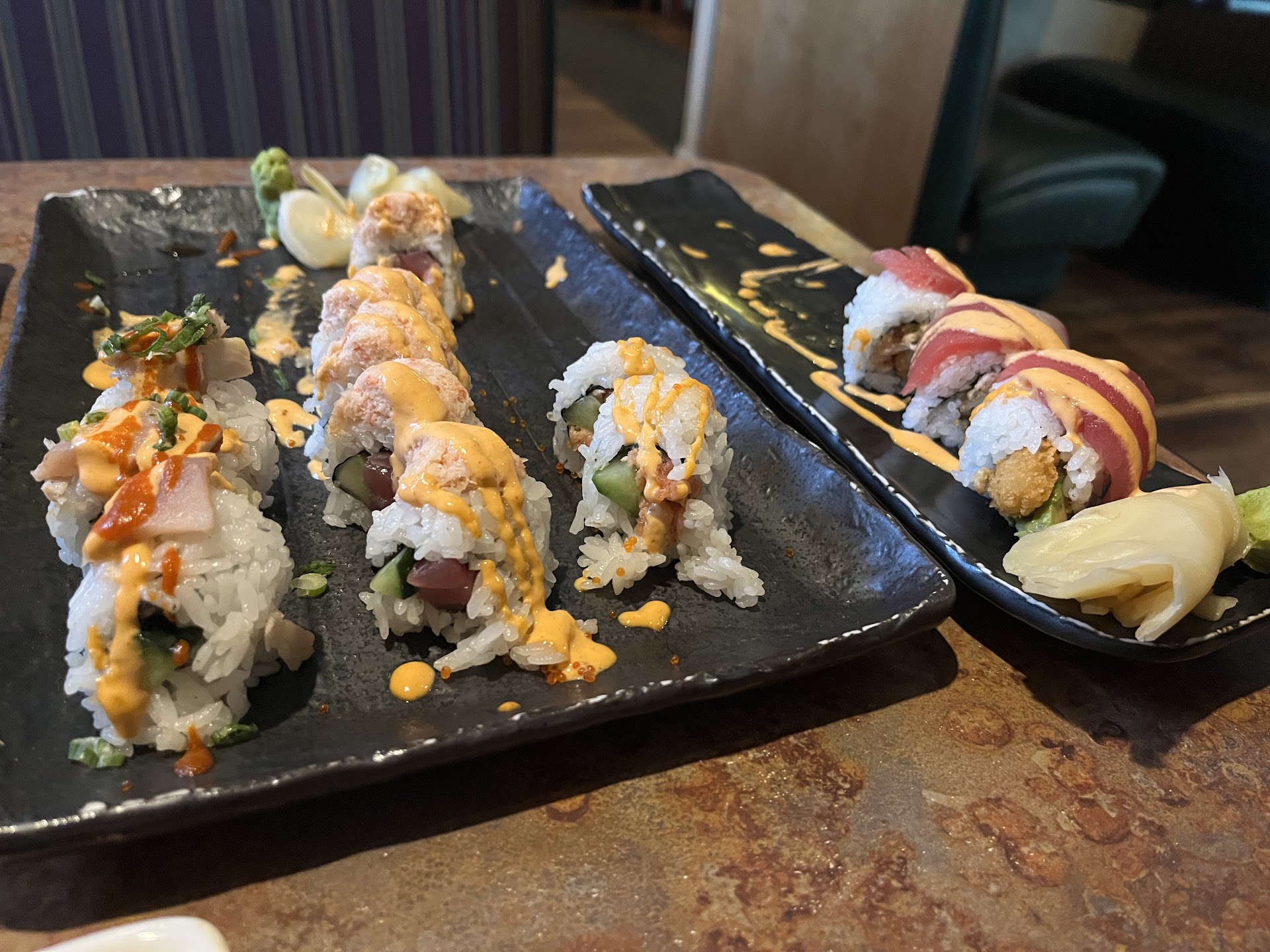 I only had a nigiri platter on my first visit, 7 fair sized slices of fish and a very unique spicy tuna roll unique to the establishment. The fish were everything one would want from the different varieties, some melted clean in the mouth and others had the right texture that defines the way sushi is meant to be experienced. I know that I am definitely coming back to this place in the future as it is close to home, friendly, and has great food. A hidden...