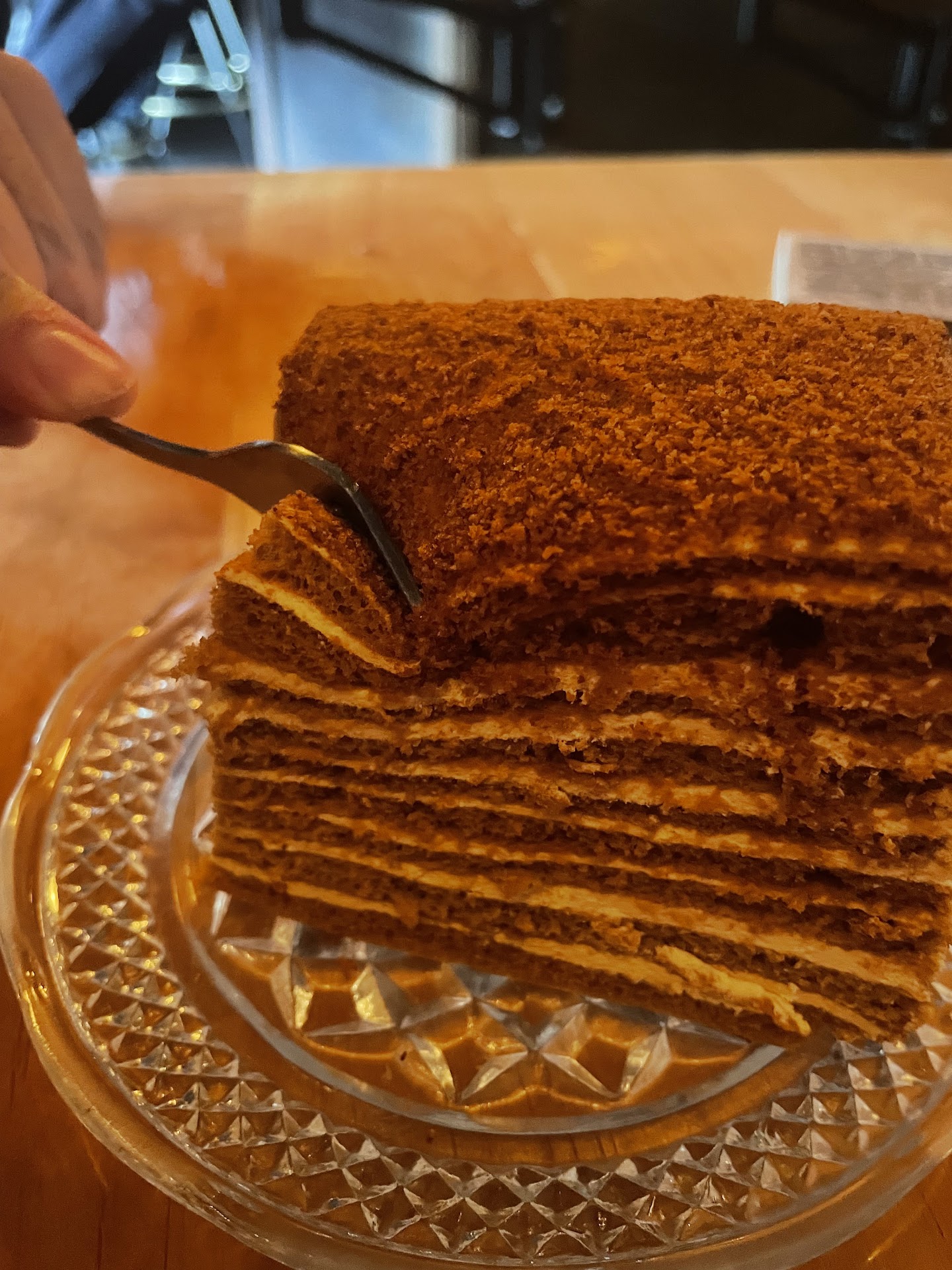 Last but not least, the honey cake was out-of-this-world good! I’ve been to other Russian restaurants in Washington, but Korocha Tavern takes the cake (literally!) for the best honey cake!