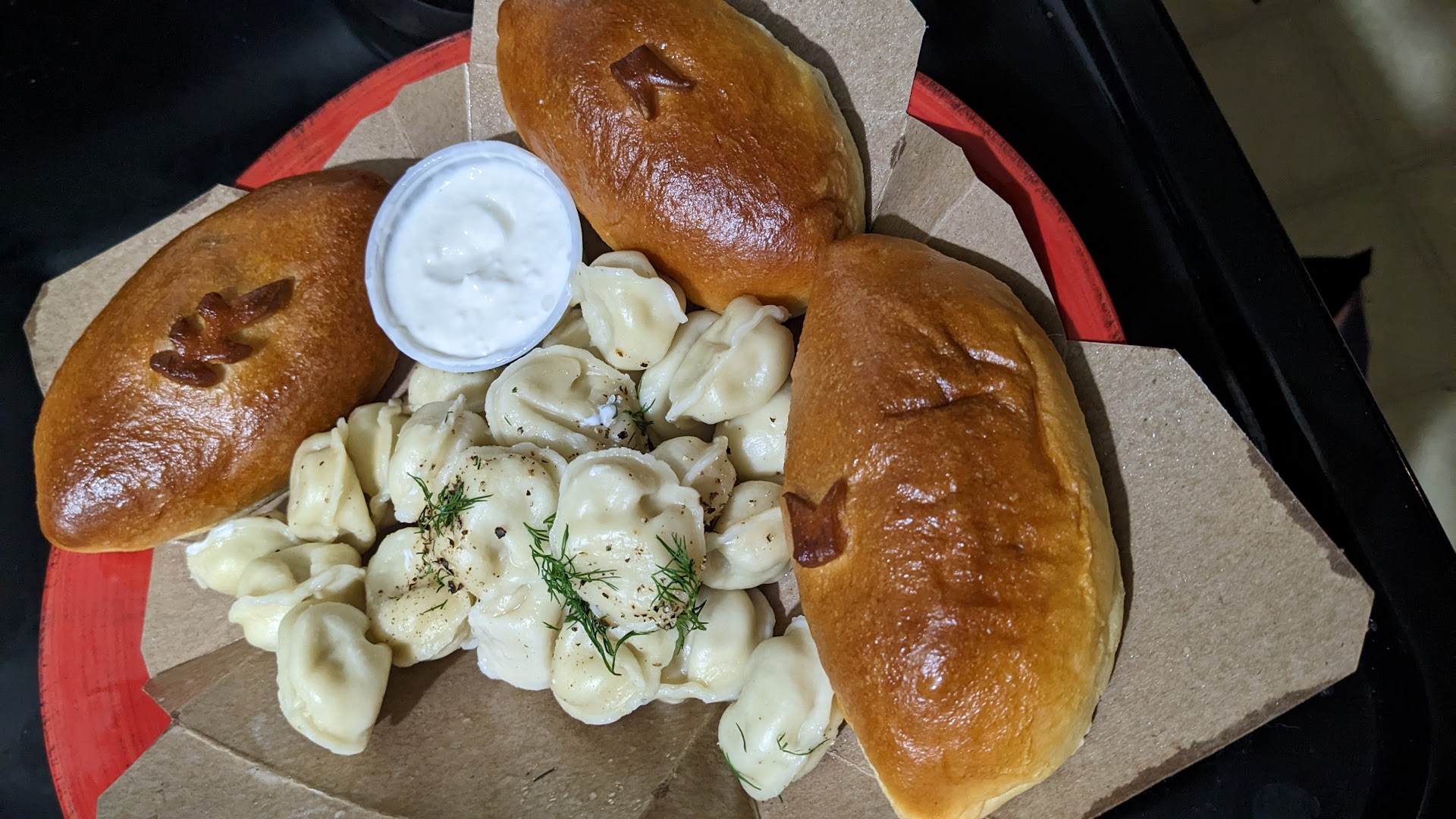 Potato and cheese Vareneki 🥟 Pickled cabbage 🥬 Pickles cucumbers 🥒 Cold summer borscht 🥣 Piroshky 🥖 The Lenin Drop...