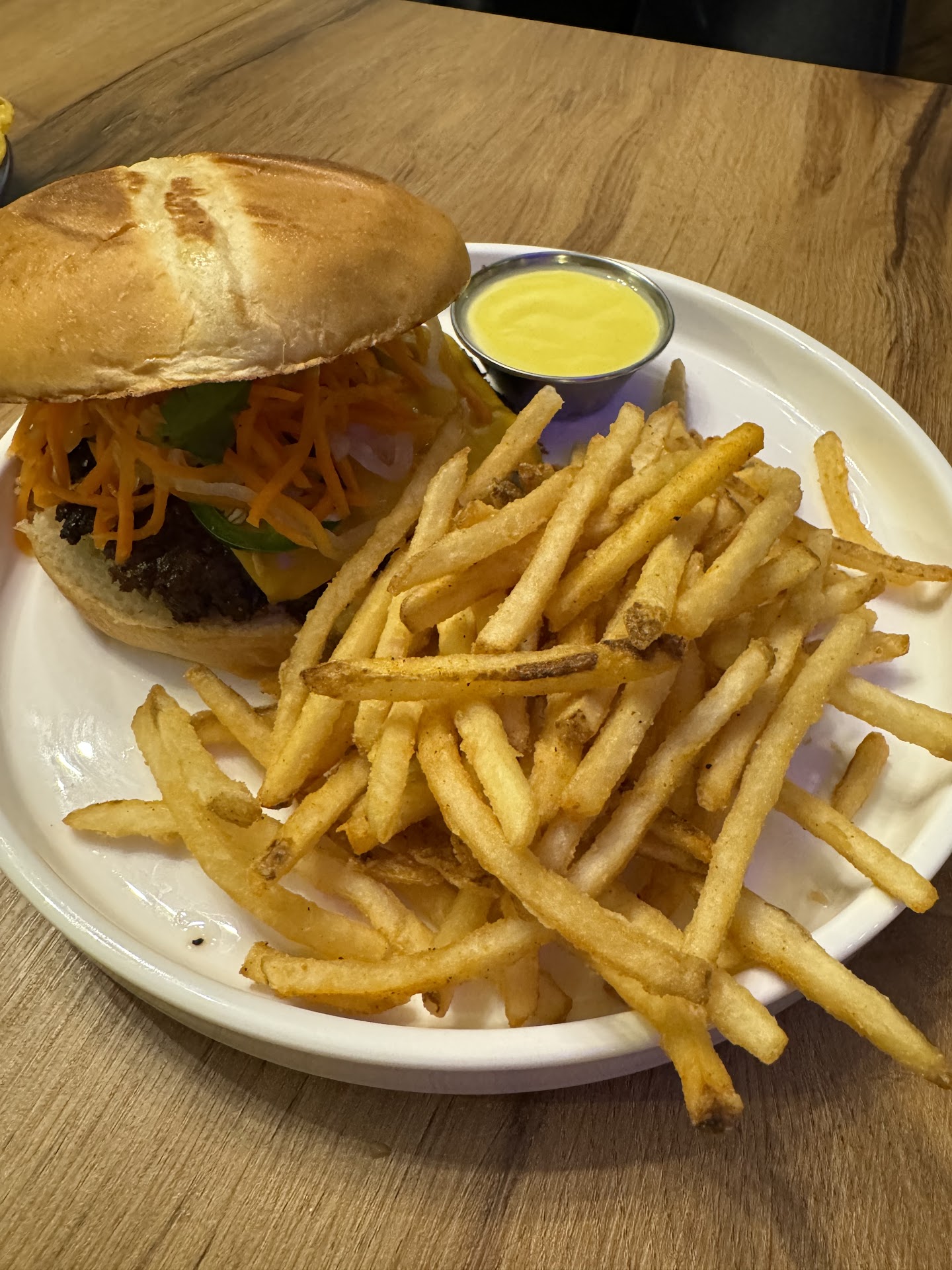Banh Mi Smash Burger: A brilliant fusion of flavors. The juicy smash burger paired perfectly with pickled veggies and fresh herbs – it felt like I was having a Banh Mi but in burger form!