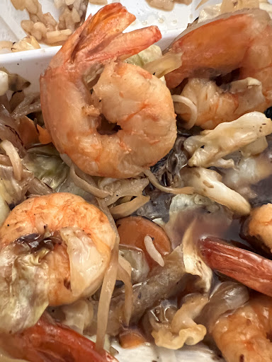 I watched them make about 8 pre orders (this was about lunch time) and afterwards, they bagged my order to go. Once I opened my order and tried it, the shrimp tasted either overcooked or old. The shrimp was hard. I’m not impressed with this plate at all. I’m really disappointed. The vegetables were fresh, and I feel like the veggies were only fresh because they were already cooking them for the other pre orders.