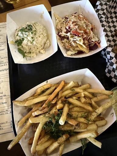 For sides I got fries, slaw, and black eyed pees. The fries were good (hard to mess up French fries). Slaw was 5/10. Peas were disgusting and inedible. Total with a cocktail and a beer plus tip was $70. Outrageous for the quality. Service and atmosphere was nice enough though.