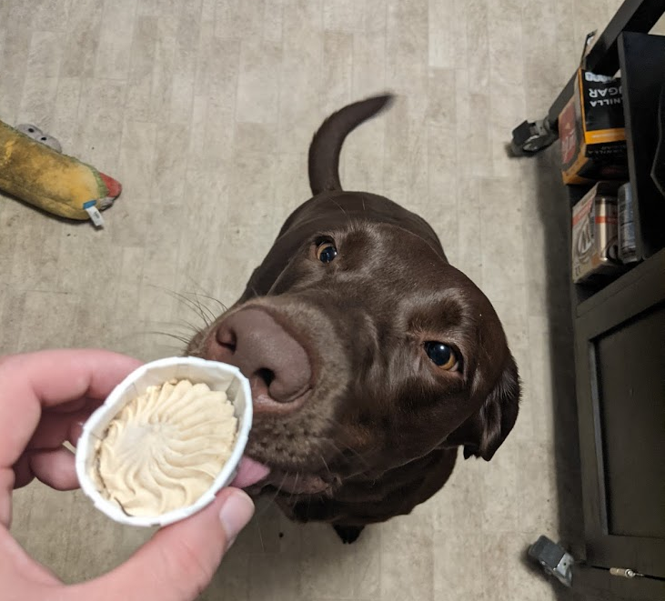 They also give little "Doggie Scoops" for free for your dogs (photo attached) which I think are just Greek Yogurt and peanut butter (which I was really happy about since some "dog sweets" have upset our dog's stomach in the past.)