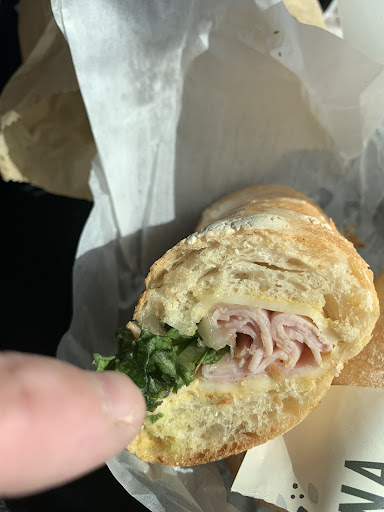 They are known for their bread, pastries- stick to those and you wont be disappointed. That would be 5 stars for food. If you get any of their lunch or other menu items which are made to order- would put it at 2 stars for taste and likely not worth the money when you have so many other options nearby for good food. We tried a slice of cake- excellent, latte- excellent ( sans art), chicken pot pie- very buttery/ oily with mild flavors, verdura sandwich- lacked salt or any flavors, the olives on the side provided most of the flavor, bread was good but you can likely make something better at home.