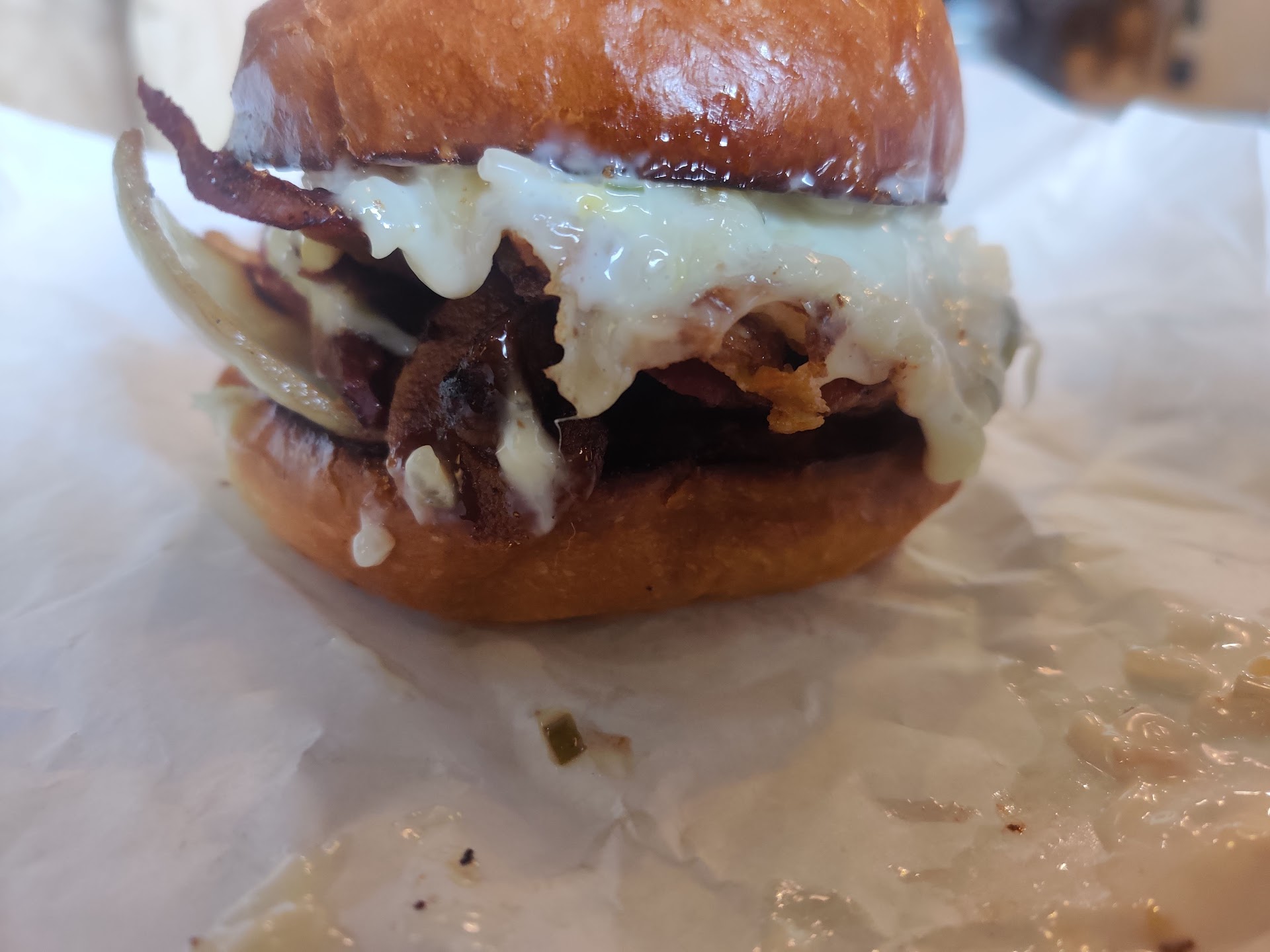 Really great quality ingredients, homemade "red sauce" which is a delicious tomato based reduction sauce. It just adds the most amazing deep flavor. Carmelized onions, egg, crispy bacon, cilantro, cheese, softly toasted bread.... My lordy. They have so many options for breakfast, lunch, pressed juice, and coffee at an affordable price. I can't wait to come back and try more. I'll be dreaming of this sandwich.