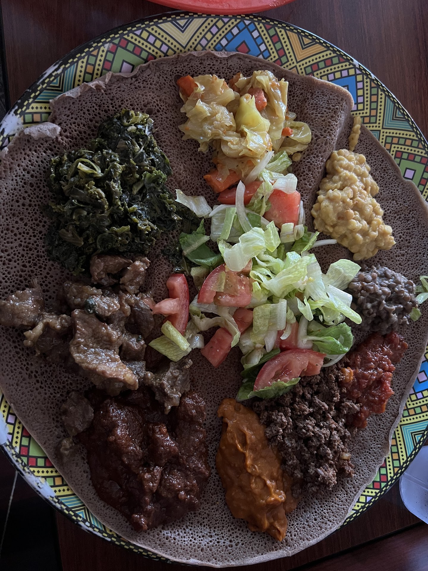 Wonderful Ethiopian restaurant tucked away in a neighborhood. After walking in, I was greeted by customers and staff; everyone was gracious and kind. They offer vegetarian and meat options, and having tried both in the mixed plate, they are delicious. The shiro and firfir were my favorites. Everything was well spiced, with a delicious flavor. The injera was light and soft. While the food took a while to arrive, it was worth the wait and they have a nice offering of Ethiopian beers to enjoy in the meantime. My only critique is that some of the entrees were on the cold side (there things can take days to make, so reheating is not unusual). Overall, I would go back and I did enjoy the food...