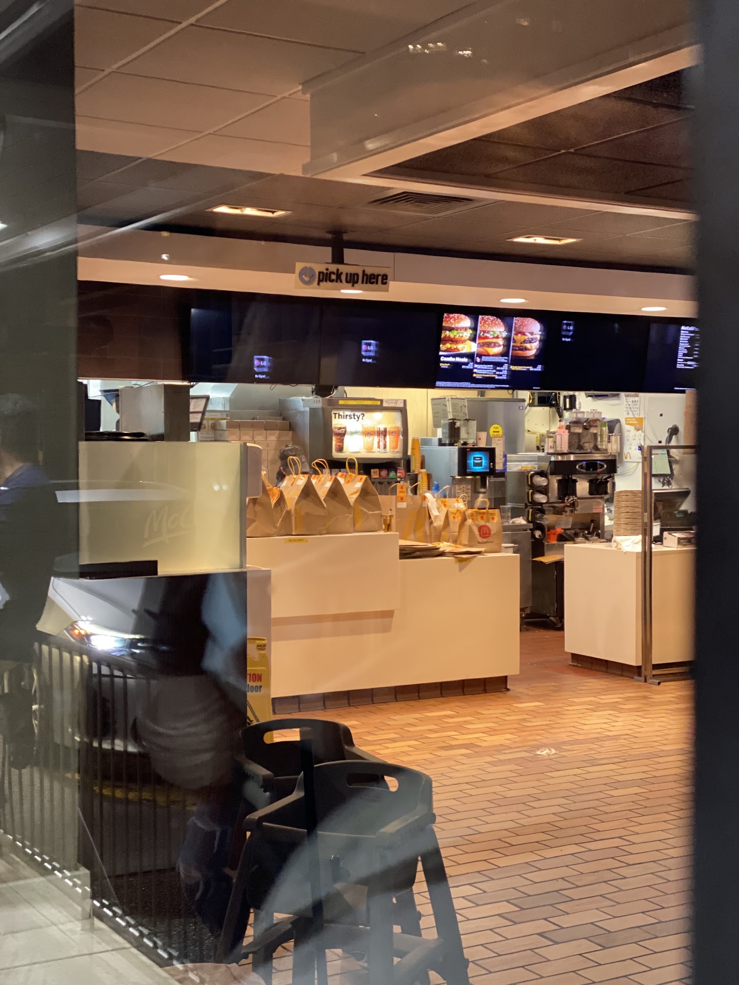 EDIT: Visit tonight left me quite irate! So apparently the regular covid/distanced pick up window had closed. Upon going to the drive thru order window, the employee refused to take my order. Not just every other McDonald's location, but all fast food places that I've been to while the front counter is closed and only the drive thru open, it's been perfectly acceptable for pedestrians to walk through the drive thru windows. Either this location has different guidelines from every other franchise or the employee was wrong regarding policy. Either way, bc of the limited bus availability at the time I had a 20 minute walk one way from downtown, and then return empty handed and my other late night food options were no longer possible. Had I chosen to eat better food, I wouldn't be going to bed with an empty stomach. Thanks alot McDonald's, this is the (lack of) customer service that your business has long been associated with. You have left a bad taste in my mouth, and I will certainly be going to the other locations if I'm craving junk food if I return to a McDonald's after such a rude refusal of my business. Also it would likely be wise to forward a note to this location's management that the guy working the first drive thru window @11:20p needs to keep his mask on at all times; when I initially walked up, he had to put it back on. Not what I want to see from the employees responsible for the food I had planned on eating, let alone if he was infected, contagious, and still asymptomatic, the entire cubby he was working in would be flooded with the virus and covering everything, including his hands he uses to take payments and return card or change. Be thankful I wasn't an inspector as that employee would be responsible for the location receiving a hefty fine.