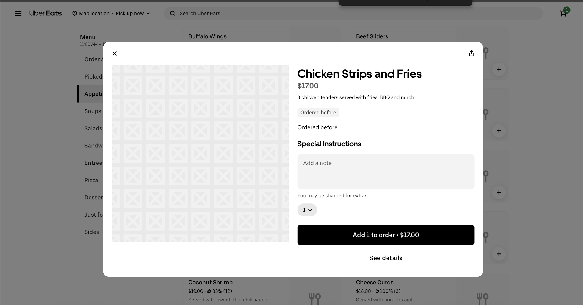 I ordered takeout from them from uber eats, and they listed a 3 piece chicken strips option that was a bit more expensive then the Children's size so I ordered that since I assumed the children's size was going to be 1-2 pieces.