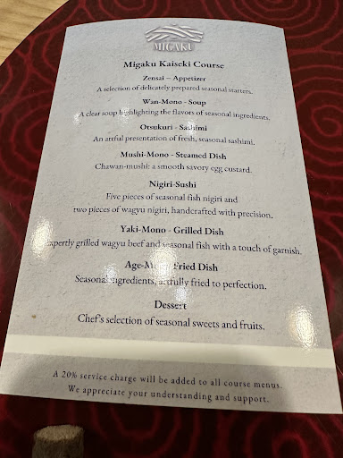 Ā Ā Ā Read moreCOME WITH AN EMPTY STOMACH!! Although the price of Migaku is high, the value is worth it. Iāve been to Japan multiple times and the food quality was on par with the omakase I had at a Michelin starred restaurant in Tokyo. The kaiseki appetizer had the perfect blend of in-season vegetables with delicious slices of sashimi, a green pea soup, and a sakura-themed tofu in dashi sauce. Every bite was filled with flavor. The seasonal soup tasted just like a miso soup Iād had in Kyoto and was pleased to learn that the ingredients were also from Kyoto. The nigiri was my personal favorite course, with the standouts being the geoduck, king salmon from New Zealand, and Hokkaido scallops. I cannot overstate how fresh and delicious every bite was. The sushi rice had a hint of freshly grated wasabi and some with a fresh wash of citrus or soy sauce. The grilled course was also a favorite, with the black cod being one of my favorite dishes Iāve ever had, full stop. The mix of stuffed vegetables and the flavor of the black cod was so savory and rich it was the closest Iāve had to a meaty flavor in the 15 years Iāve been a pescatarian. Chef Migaku was so kind and was a delight to talk to. I also appreciated the attentive service and professionalism from our waiter. The ingredient choices were extremely high quality, and if you know anything about the types of fish, wagyu and accompaniments selected, you would know the price of this place matches the dedication to exceptional ingredient sourcing and the expertise of the chef. Me and my partner came for our anniversary dinner, and i canāt wait to find another excuse to return. I will be telling all of my friends who have been underwhelmed with Seattleās sushi offerings to give Migaku a try. This is the best sushi Iāve had in Seattle in the half decade...