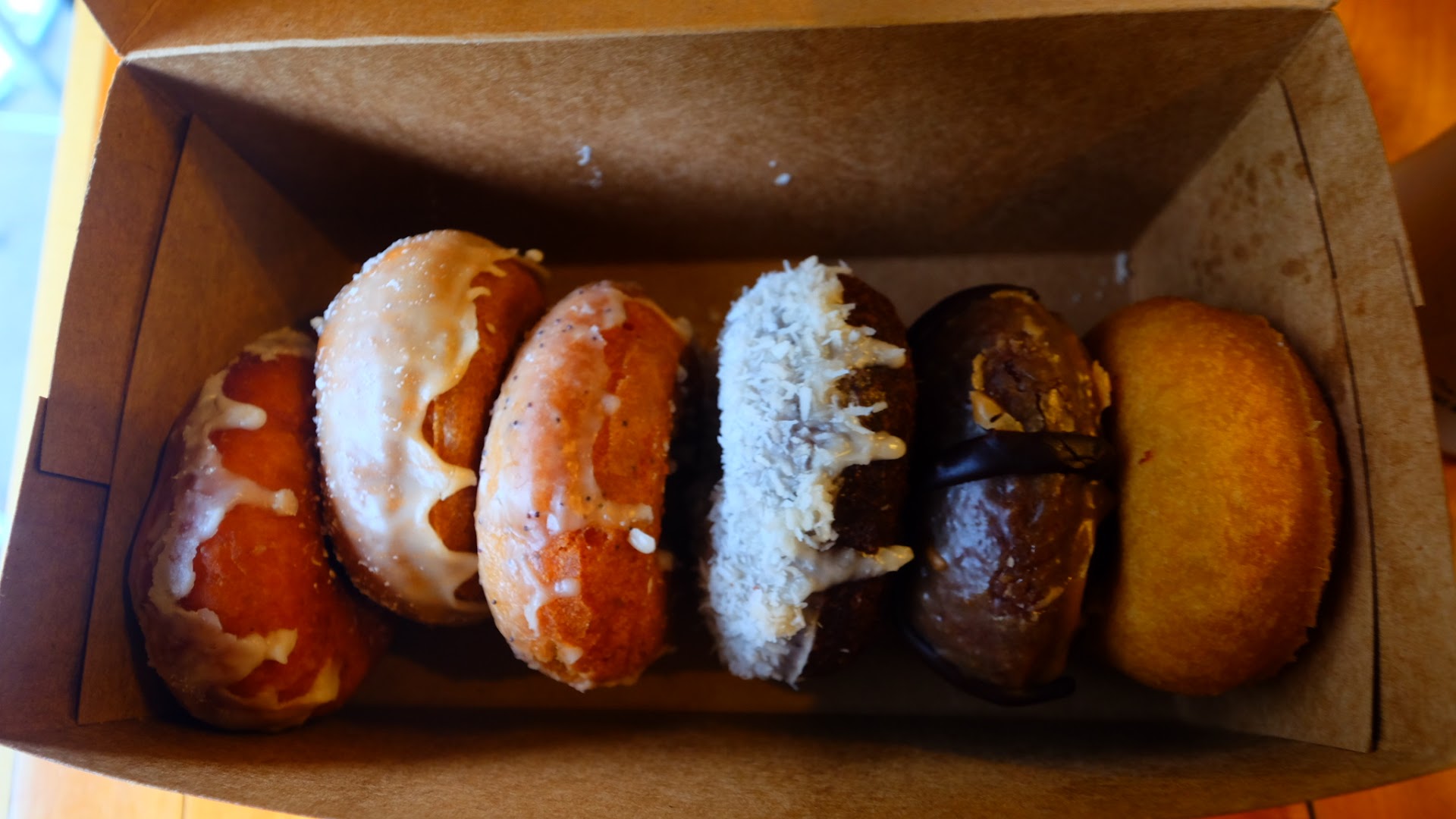 Unfortunately Mighty-O Donuts misses the mark. They serve only cake donuts and all the flavors I tried suffer from the same issues. The donuts have a weird consistency and are structurally unstable. The inner part of the donut separates from the outer part, the skin. The taste of the cake itself is just okay, but seems less good due to the structural problems.