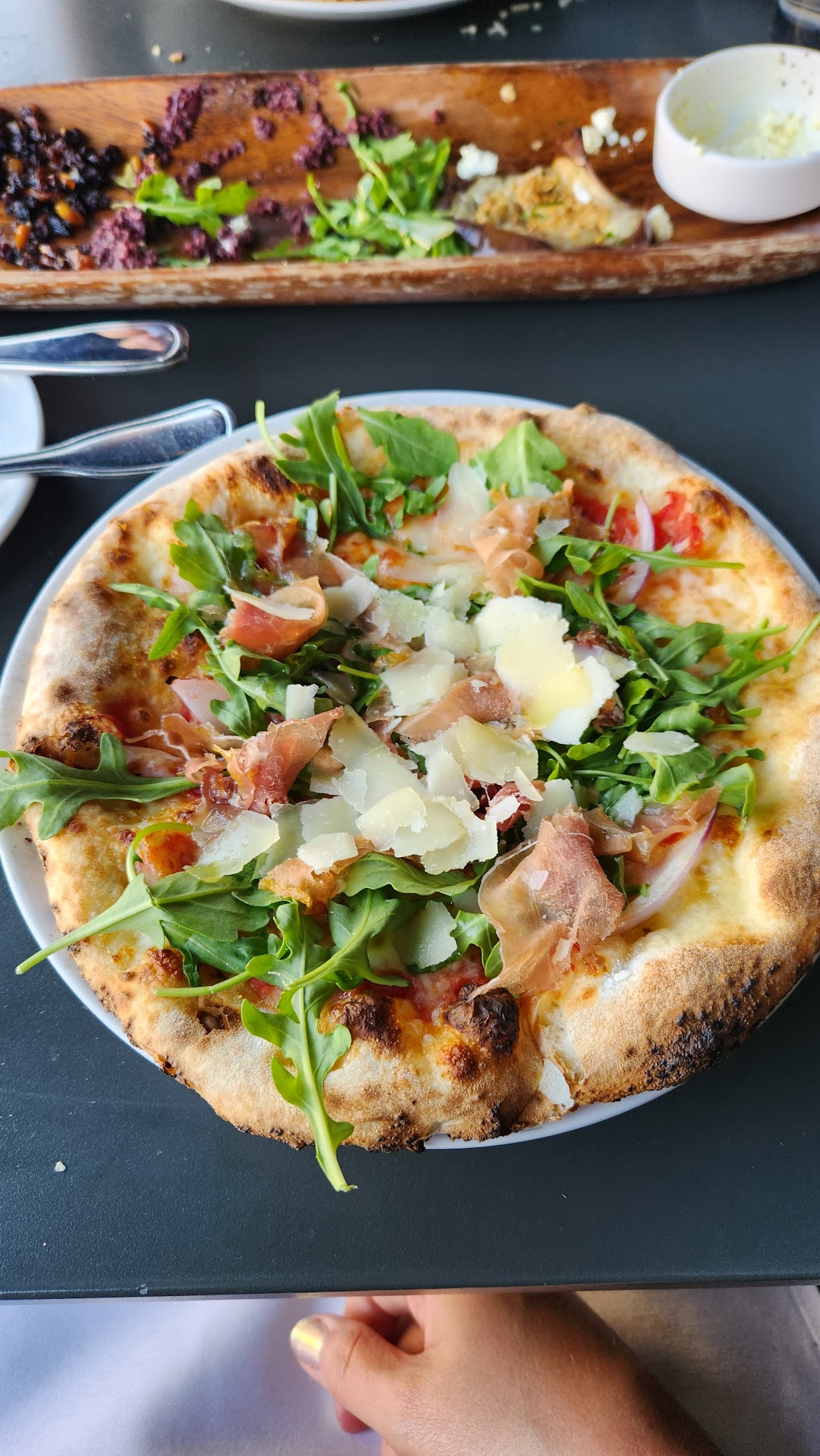 They have gluten free and regular crust. I tried the prosciutto and arugula and I loved it. I should note that I really love wood-fired pizza so I generally am never disappointed with it and I'm happy to say theirs is very very good.