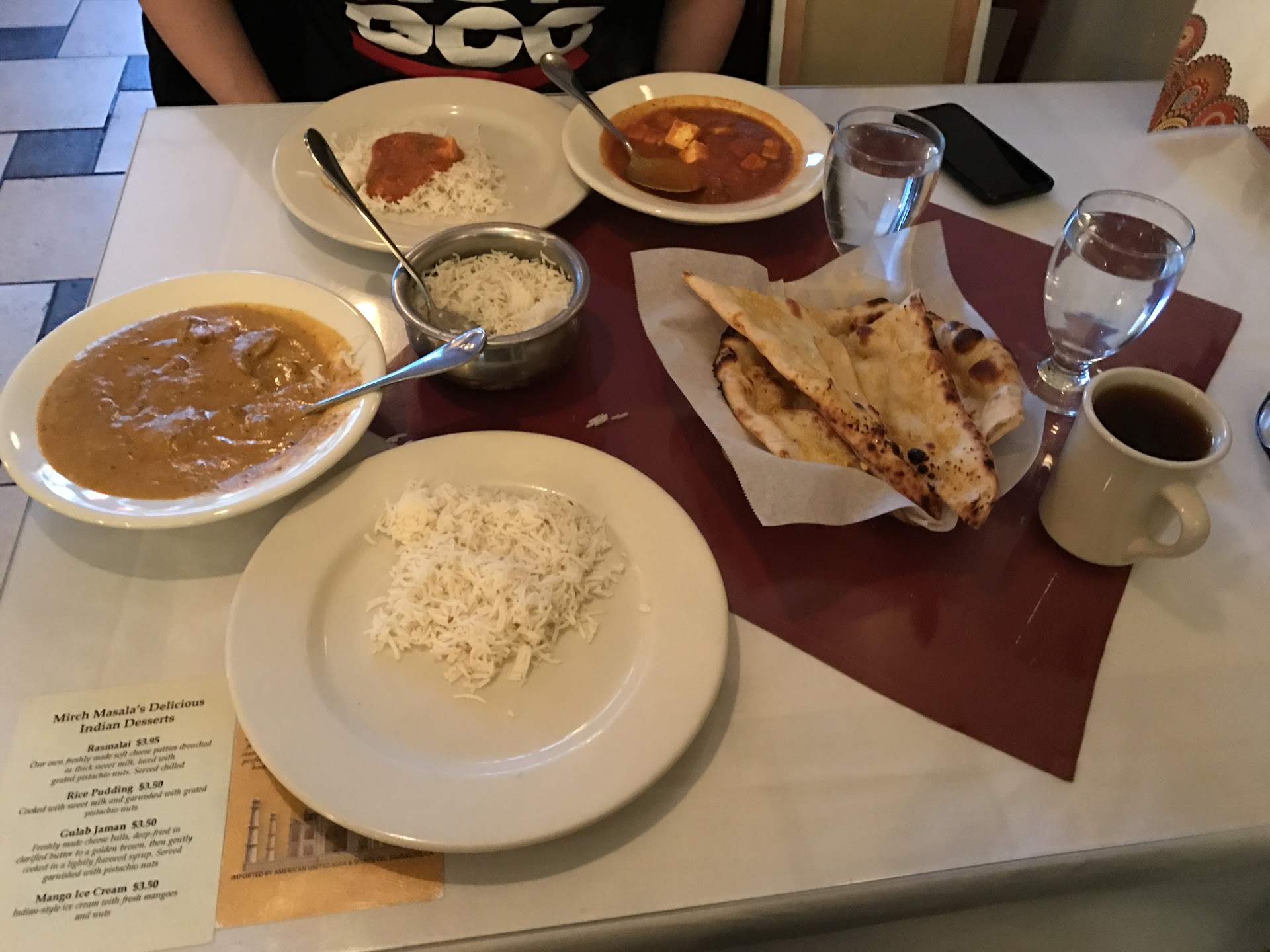 Read moreAround 1:30 on a Friday afternoon, we were in the mood for some Indian food. Having visited this location before and enjoying the buffet, we stopped in for lunch. We were greeted by the waiter (Balwind Dhaliwal, according to our receipt), who was very friendly, inviting, and accommodating. Though we were disappointed that the restaurant, now under new management, no longer offers a lunch buffet (damn you, COVID!), we could not have been happier with our entrées. My wife and I both ordered the Chicken Butter Masala, along with a side each of plain and garlic naan. The dish literally couldn't have been better - tender tandoori chicken chunks in a rich and perfectly seasoned sauce, served with some of the fluffiest rice I've even eaten - and, of course, we loved the soft flavorful naan with its crunchy exterior. At the end, once we had paid our bill, we left very satisfied - but were surprised about three minutes later when our waiter, who had run two blocks to catch up with us, returned my Visa card to me, which I had left behind in the restaurant! This great, way-beyond-expectation service, coupled with delicious food and a friendly atmosphere, means that we will be dining at Mirch Masala pretty much every time we decide to come to the city - and we think you...