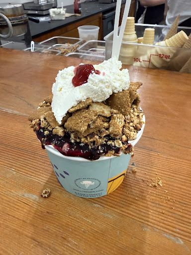 I was visiting from New York for the week and stopped in here all but one night (only because we were out too late). Everyday the staff were all so friendly despite the long lines and sometimes ruder clientele that may have walked in. The ice cream was genuinely the best I’ve ever had. They also were accommodating with me wanting to add some of the blueberry compote to Mollys Favorite Sundae ( 10/10 would recommend ). I haven’t stopped thinking about it. I got a hat but regret not grabbing more merchandise I’ve been talking about this as the highlight of my trip. If you’re in the area you have no reason not to stop in.