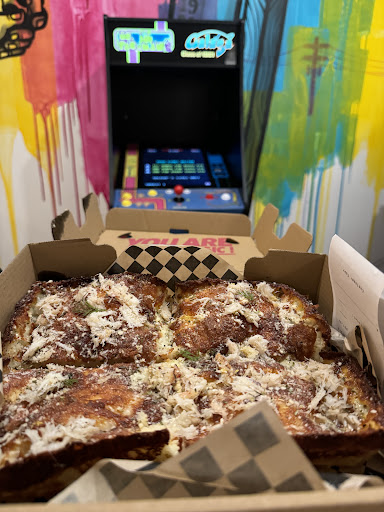 The space is actually very hip and clean. My date and I played free arcade games after eating. Suprisingly the bread they use is top notch and taste similar to moist and well seasoned focaccia. I wasn’t even going to dine in originally, but when I came to pick up my pizza the space was so inviting and cool looking I had to experience it so I grabbed a cup of water and found a table to eat at.