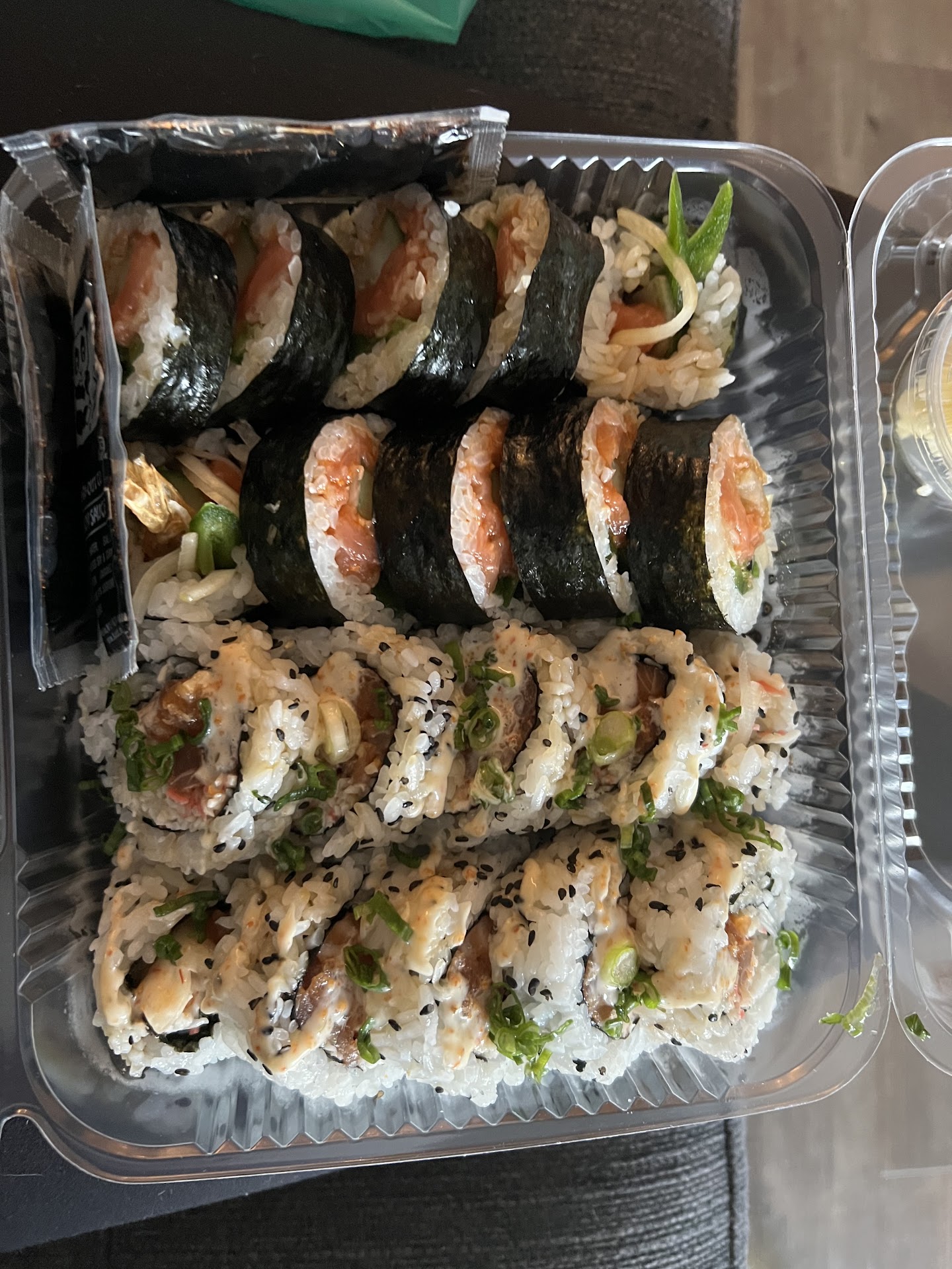 Anyway, the rolls here are fairly large. Lots of rice and presented relatively well. They have nigiri too! It's not shown on the wall menu but there are smaller menus near the cash register that are more up to date.