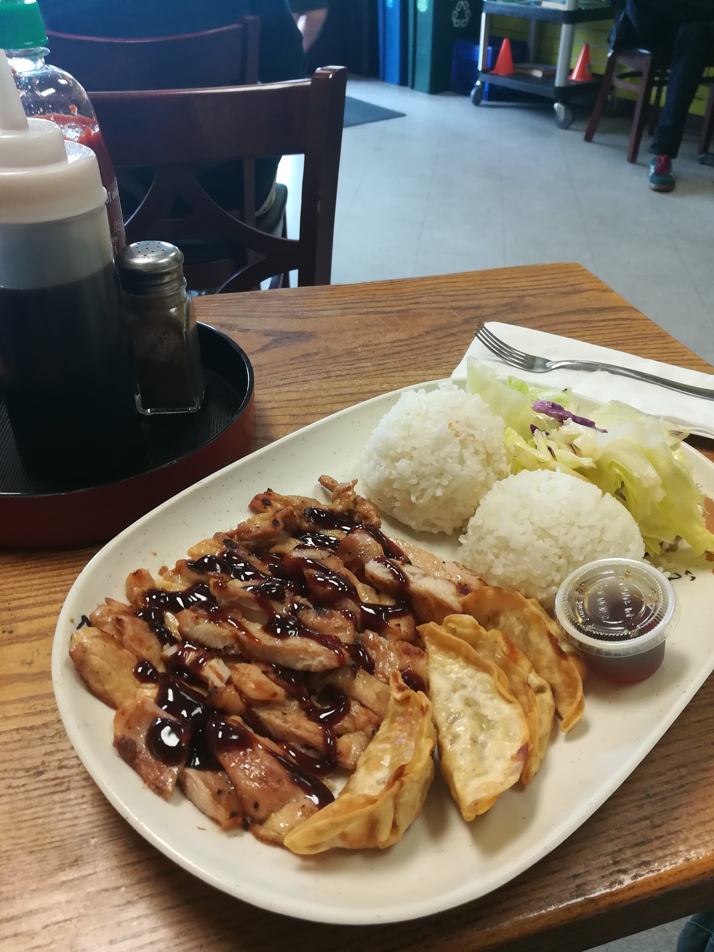 I always get the spicy chicken & gyoza combo, but also love their chicken yakisoba. My household will always go out of our way to eat here when we have a teriyaki craving!