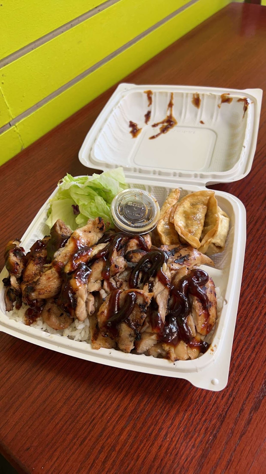 I’d like to start this review out by saying that their rice is cooked to absolute perfection. It’s so good and sticky and unlike the obviously boxed rice their competitors use. I’m very picky about meat from restaurants because I absolutely can not stand the gross, chewy, fatty, gristle texture, so I usually stuck with the fried tofu. Their meat is the opposite of the gross “food” I just described. I saw my boyfriends food and saw that it actually LOOKED / smelled like real chicken, I actually tried some and was SO HAPPY IT WAS REAL CHICKEN!