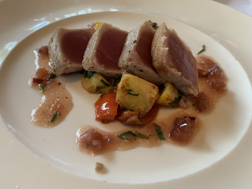 Next, a perfectly prepared piece of Halibut. Seared and seasoned simply, delicious. They were happy to replace my fennel and chars with marble potatoes. Never making me feel like it was any trouble. Very nice wine by the glass selection.