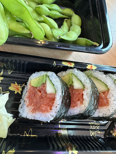 The sushi here is overpriced and low quality. Before ordering, I specifically asked the cashier if ground fish was being used in any of the sushi. She lied to me and said no. I only found out when the sushi was brought out. I ordered a spicy salmon and spicy tuna, coming at $17 and $11, respectively. Both had ground mystery fish (you don't truly know what you're getting), and the strips of whole "salmon" on top looked dull grey and not fresh at all.