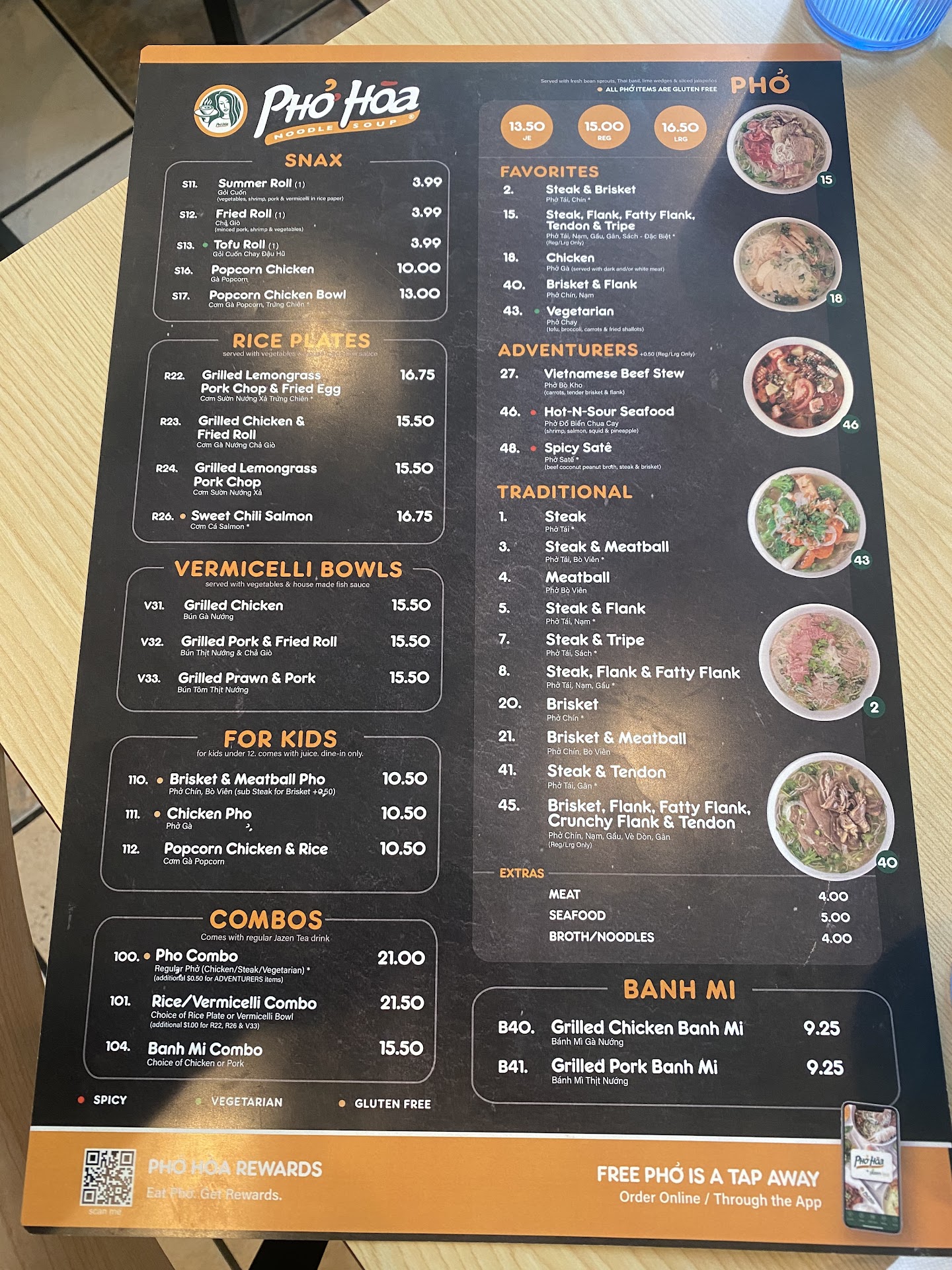 I love the staff here, they know my voice, and therefore my order, when I call, always friendly and fast. The pho here is delicious, with decent portions. I always get #1 with extra steak, cuz I've been going here for over a decade and tried a lot of the menu years ago, now I have my preference. If you're not used to pho, #1 is the tastiest, most "tourist" friendly pho on the menu, and it's also great for when you aren't feeling well.. add a small dab of sriracha (they give you a small container with a mixture of sriracha and hoisin sauces for to go orders, but you can request one or the other or to have both seperate), to your broth along with the basil provided.. you'll feel so much better. Cold or stomach bug, doesn't matter, it always helps.. even when I haven't been able to eat anything else. It's good anytime, but it's my go to for sick days especially. I also like their fried rolls, pork chops, and the drink/bubble tea menu has some...