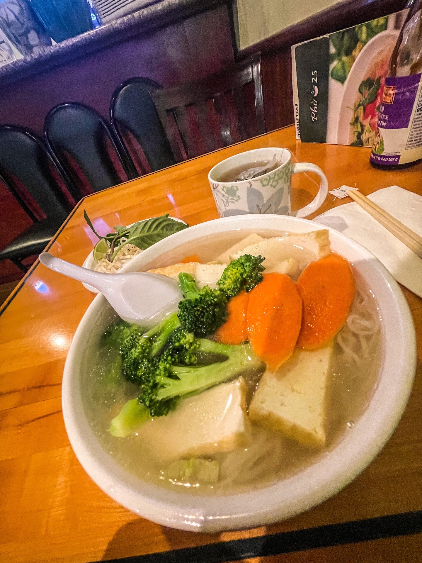 I had not eaten here in years but in the past I had found it to be a good enough place to get a bowl of pho, so I decided to have lunch here. I went in and a young man directed me to sit at the table nearest the kitchen. I don't tend to let stuff like that bother me but when I sat down I noticed immediately that the table was dirty. When he brought me a menu I asked him if he could clean the table. He seemed annoyed and perfunctorily wiped the table with a wet cloth, missing a lot of sticky grime closest to me. I gestured that it was still dirty there and he ignored me and went away. I thought about it for a minute or so and decided they obviously didn't want or need my business and I wasn't willing to eat in a place where customers are treated so rudely, so I gathered my things and put on my hat and stood up to leave. I saw him look at me questioningly and I said it's not clean, I'll go somewhere else. I won't go back there. If a restaurant wants my business the employees need to be made to understand it is not okay to be so rude and dismissive of customers, ever. I am not an arrogant, self-important customer; when I am happy eating somewhere I tip well and my attitude is that everyone working there is an important and...