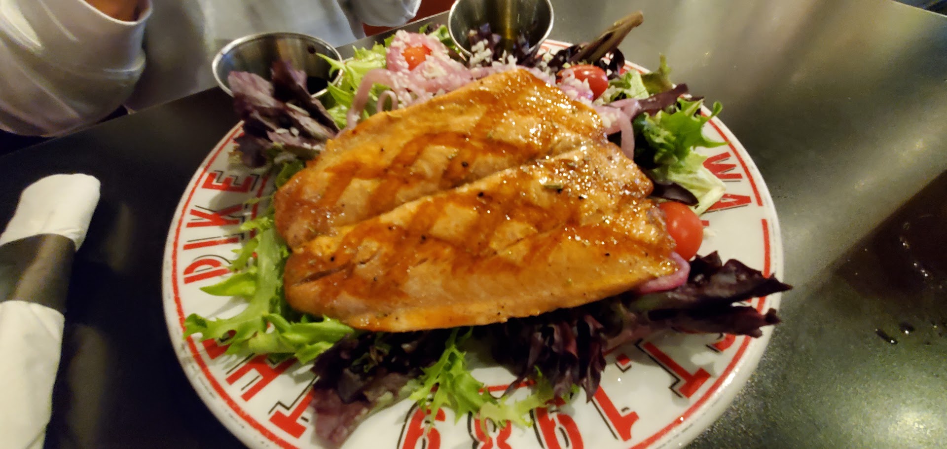 Additionally, there is a problem with the operation. The management does not seem to understand the difference between "substituting" and "upgrading." They were offering an upgrade with a burger order with chowder soup. When I chose the upgrade, the order didn't come with fries. I was told that I was upgraded to a soup when I asked for fries. Consequently, they gave me soup instead of fries. I replied by saying that upgrading means keeping the same quality and adding more at a higher price. That's why you charged me an extra fee for soup. Changing a side with something else is called "substituting." After talking to a couple of people, I ended up getting an order of fries for $7.00. Meanwhile, my wife added salmon to her salad. They did not remove anything from her salad, and the salmon was excellent. Despite paying $7.00 for lousy fries, we paid $10 extra for a delicious salmon. There seems to be an issue with pricing. I suggest they look into it.