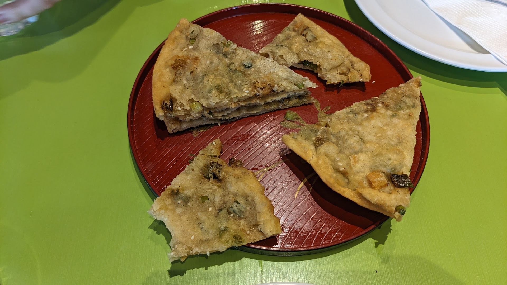 Read moreThe filling of the pork and cabbage dumplings were weirdly pink and tasted awful, not sure if they were supposed to be like that or if they weren't cooked or something (you can see in one photo the other fillings for the pot stickers and xiao long bao were a normal colour). The green onion pancake was really weird in texture, almost as if made from gluten free flour or something other than normal flour. The xiao long bao were soggy on the bottom and disintegrated as soon as you picked them up, I'm assuming all the soup bled out and that's why they were dry on the inside (meanwhile the steamed dumplings and pot stickers had a lot of liquid inside). The pot stickers looked good but actually weren't crispy at all. Everything had a weird taste not at all like what you'd expect of these very normal/common asian dishes. I forced myself to eat more of it because I was super hungry and we didn't have time to go elsewhere, otherwise would've just left after the first bite of each thing (which is what my partner did). Can't really comment on service as you just use the QR code and order and pay online. There were only two people at a table when we went in (on a Saturday around 1pm), and they were gushing about how good the food was, so I don't know if maybe we just ordered the wrong dishes or something, but I don't know how you could mess up all 4 of these basic...