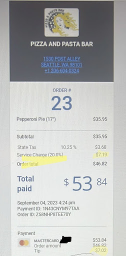 Read moreI will never eat at this place again purely because of the dishonesty and rude customer service. The food was good, but not worth the price or hidden fees. A 20% service fee is absolutely ridiculous especially when you are not aware about it until after you are charged and asked for a tip. I work in the restaurant industry and we always let customers know about a service fee before we take their order so that they are aware of the additional cost being added to the order. 35% of my total was the service fee and tip (I tipped 15% even tho they did not deserve it). My friend used her card to charge the original full price so that I could Apple Pay her my portion of the bill later as we were traveling from Portland, and when I went to the same cashier to get a receipt printed she printed the wrong receipt and was bothered that I asked for the correct one. When having my order being taken, I noticed that I spilled some water near the register and asked if I could have some napkins to clean the spill to prevent other customers from slipping behind me and was handed a single napkin when I asked and clearly needed more to clean the puddle on the ground. I understand the stress of working in a restaurant, but it’s no excuse for rude customer service especially when you are charging such high service fees without the...