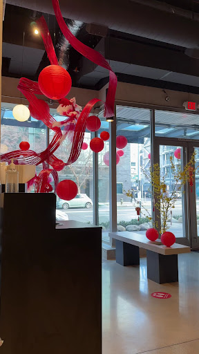 The interior is spacious with somewhat of a minimal/industrial vibe. Lots of gray and concrete. But it's comfortable and well-executed.