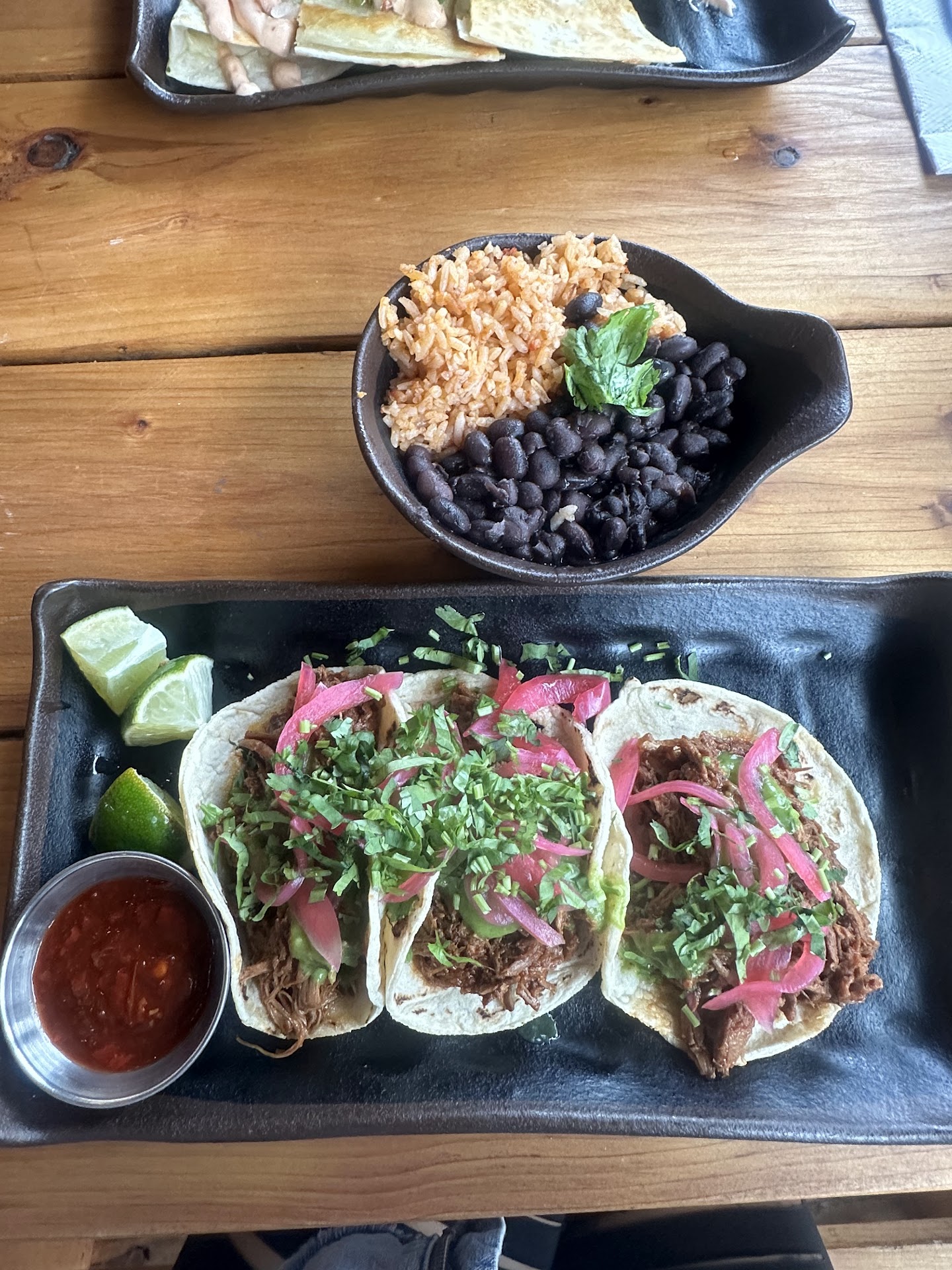 Then came the street tacos… and well, if “street” was in the name to describe the atmosphere more than the flavor, then they nailed it. Because the tacos lacked seasoning, soul, that personality you crave when you order tacos with hunger and hope. They weren’t terrible, but they weren’t great. Just tacos — nothing more.
