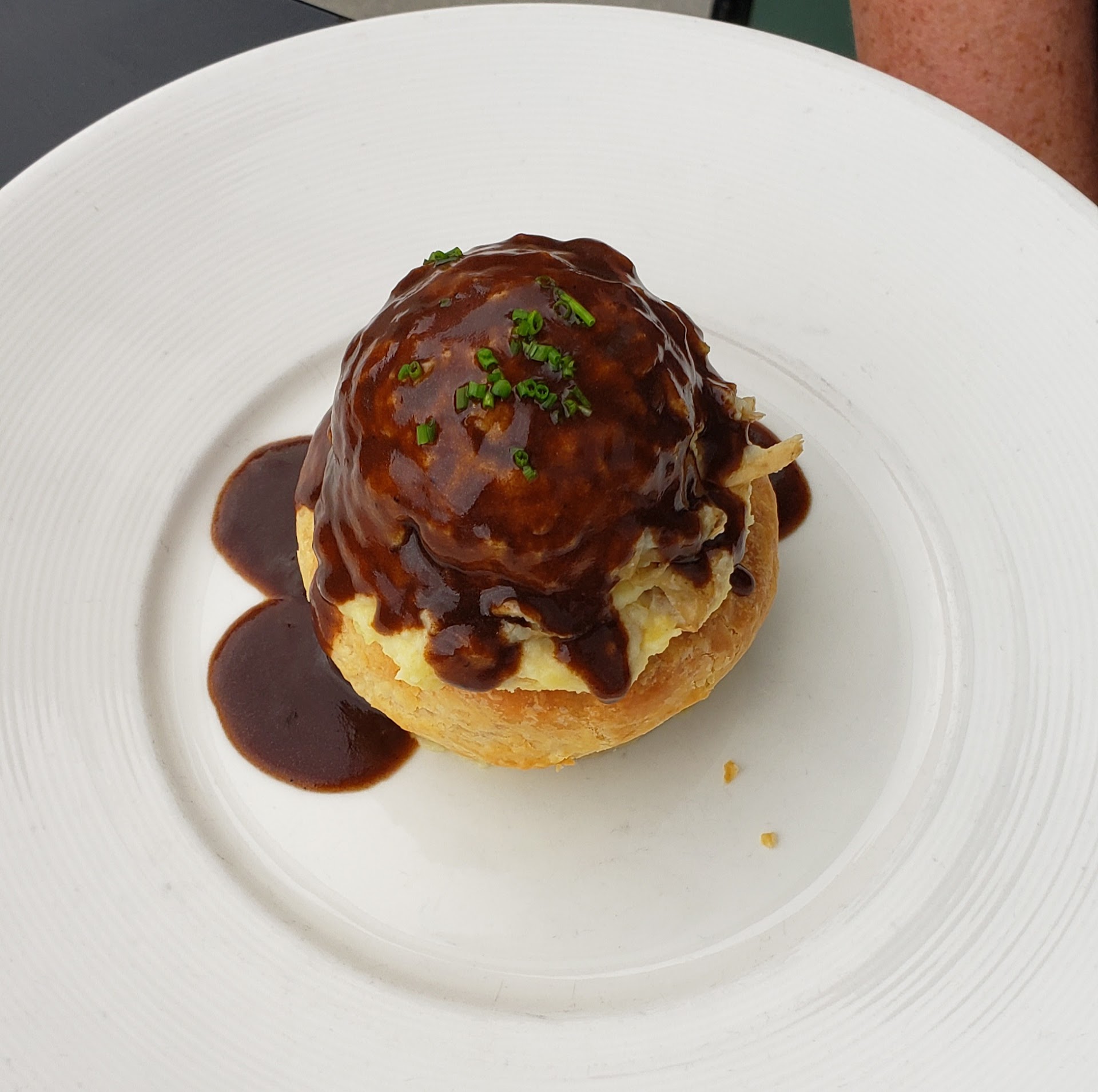 I returned the next day! The first day my sister was in town from the east coast, it was her last full day here and as I was showing her around town. We had just finished the MoPop museum and walking all throughout the exhibit, needless to say, we had something to eat on our minds but had much to do! As I was heading to Ye Olde Curiousity Shop we began passing the restaurant, I looked to her and asked if she'd want to split one and she said yes so as she went ahead to check out the curious before they closed, I scurried in the see what was left as it was the end of the night. I walked in and immediately was helped in a friendly manner greeted by a worker named Annette who was very helpful in suggesting her favorites when I asked as I had never been there before and was in a hurry to meet with my sister to then dash to the top of the needle continuing our city tour, she caught I was in a hurry and quickly told me about the meal deal of grabbing a drink as well (thankful as we both needed to hydrate) and I grabbed an apple juice to go along with our recommended steak and mushroom and chicken meat pies (hard to decide from her recommendations, so I chose 2). Quick in and out and both tasted amazing, I as well as my sister were very impressed and gobbled them up en route! I returned, after resting most of the day the following evening as both my sister and I were raving about it to my partner and their parents prior to heading to the airport that day so we decided to grab it for dinner. We grabbed a few new ones as well as my primary favorite I had tried the previous day. I was greeted by Annette again who, an hour before closing, was limited to some options but offered to make all the ones I requested fresh as there was only 2 of the 6 items I ordered ready. I took one of the already made items, the mac and cheese pie, as an appetizer as we waited, to help relieve their already made stock they had left, and it was still very good as she took 35 minutes to make the other 5 items I ordered and again I grabbed something to drink per her recommendation of last time. I came back in to pick up and I learned a bit about the store and how they recently opened up another location in Renton and even have one in Poulsbo where my family goes to shop often as we have family who has property that way. All in all, I have to rave about the amazing service from Annette, the great tasting pies that have come to be no less than pure pleasure to the tastebuds, and affordable pricing for an asthetically pleasing and savory...