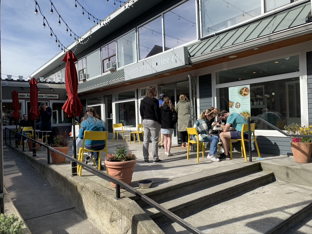 Read moreI'm obsessed with this place. Granted it's downstairs from my office, but even better that my favorite coffee shop is a few steps away! The coffee is my fave on Queen Anne (I'm an Americano girl with cream, but dangit those Sweet Cream Cold Brews get me in the summer! Probably only seasonal, so don't get mad if they're not there when you arrive!). They always have fun seasonal drinks and their food is good too (I may have an addiction to the turkey-herbed-cream cheese-cucumber sandwich thing, and they even have gluten-free bread, but if you can have bread their sourdough and challah is so good!). The staff is awesome and has made me feel very welcomed in the community since I moved here! They have a cute back patio...