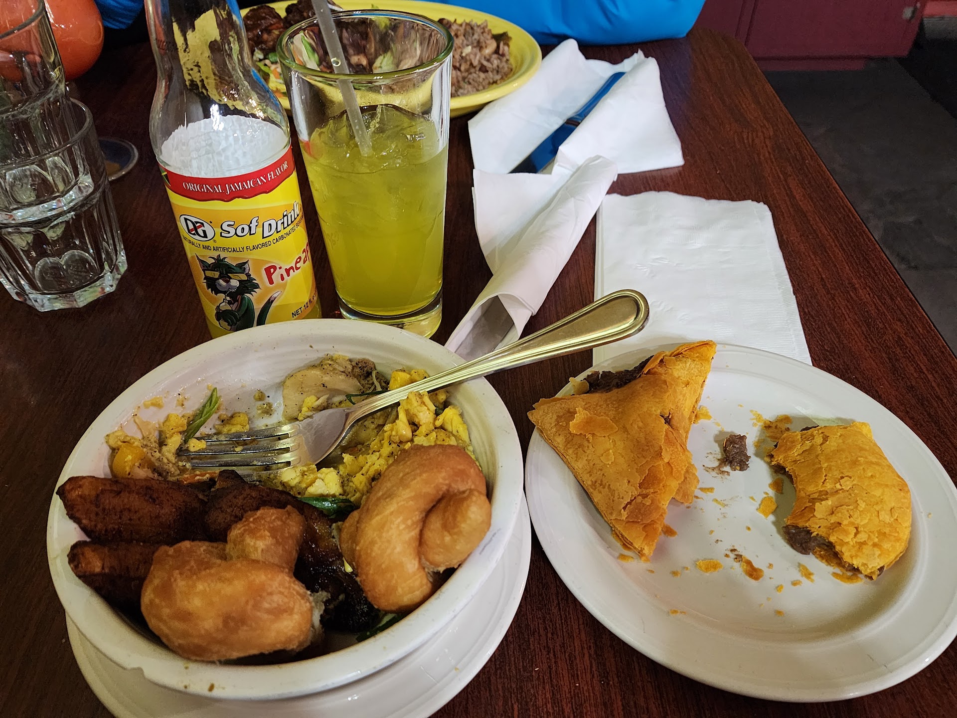 The jerk chicken was next level falling off the bone and packed with flavor! I also tried ackee & saltfish for the first time and loved it. The rice & beans, fried dumplings, and golden sweet plantains were all perfect, and I washed it down with a refreshing ginger beer.