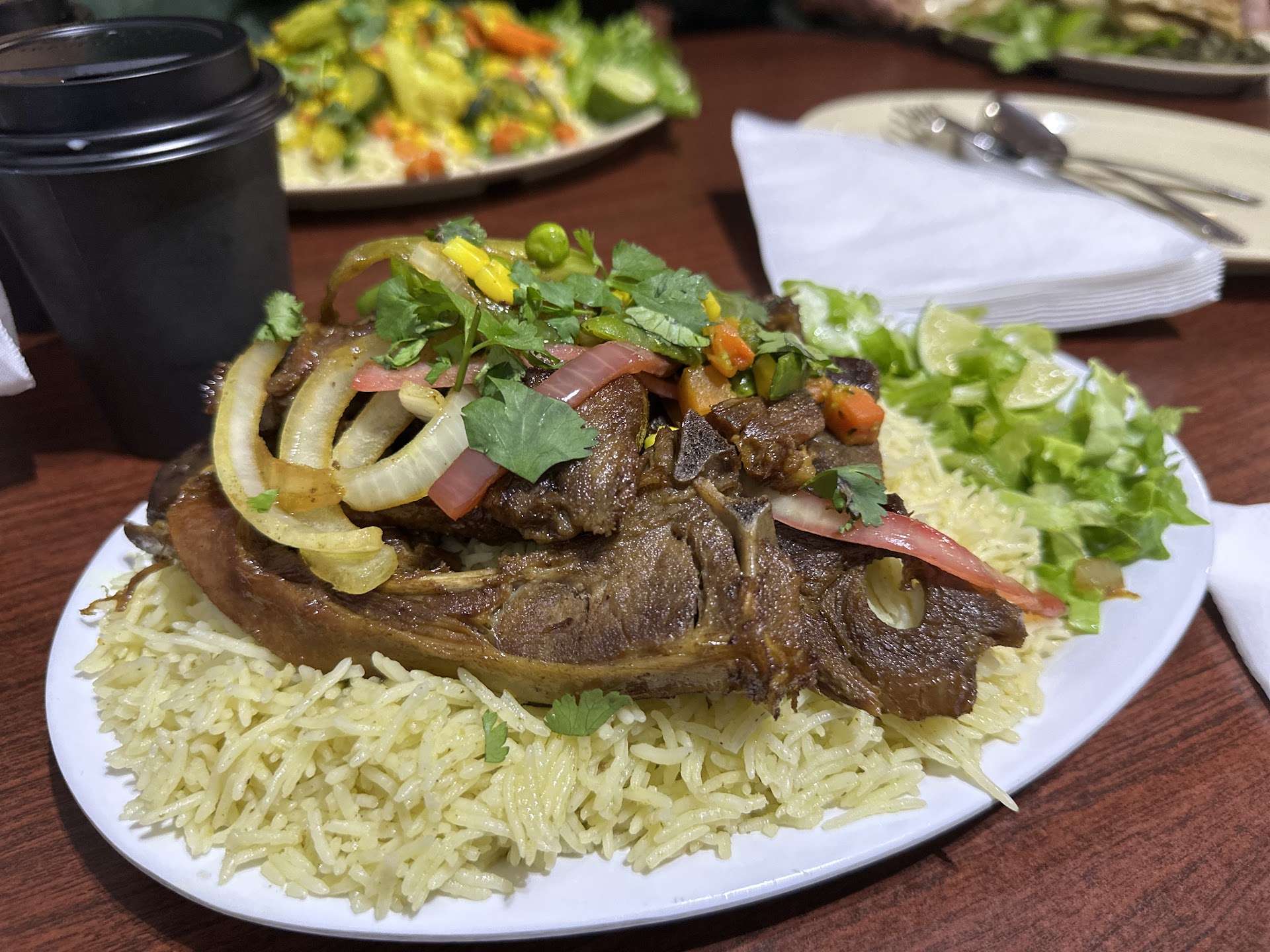 We were planning to go to the other Somalian restaurant next door but it seemed shuttered so we decided to come here. What it lacks for atmosphere and location, it makes it in spades for food. Quantities are generous and very tasty.