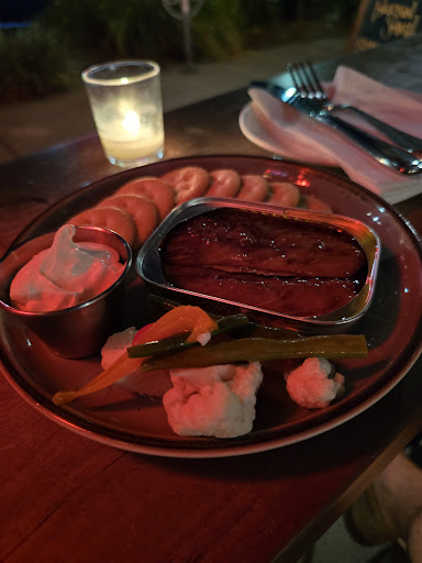 Cute little bar, and one of the few spots in the area that serves food past 9 pm. However, my main takeaway is that they're mostly a bar which also happens to serve a few food items. They have plenty of drinks, though all their non-alcoholic options are premade—no mocktails or anything. They seem to have table service, but I ended up ordering at the bar after no one came to take my order for a while.