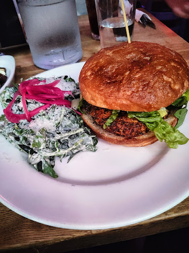 Read moreI just drank the "I Beg Your Garden" cocktail, and I'm levitating. Beautifully balanced with just the right mix of acid, sweetness and a touch of heat. I would have consumed 20 more because I'm a glutton...but I have a productive day planned tomorrow (we'll see). Moving onto the house burger, the patty was cooked medium, as requested, and topped with local Beecher's cheddar, onion jam, garlic aoli, arugula, and Macrina brioche bun. I expected the typical French fry accompaniment ( which would have been more than fine) but we were treated to beautifully fried Yukon gold home-style fries that one would only expect at grandma's house (assuming grandma lived on a farm and wasn't sunbathing poolside with a martini like my husband's grandmother), crispy and flavorful. The vibe was a nice and eclectic. People were friendly--- doesn't hurt that Seattle is moving into Summer--- but it was more than that. The staff made you feel welcomed and not like you were an inconvenience. Now for my favorite part of all....the bathroom stall wall paper is Shel Silverstein's "Where The Sidewalk Ends". Ugh, goodnight. ...