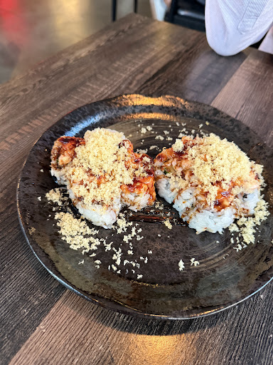 Finally, the sushi itself was a letdown. The baked sushi was oddly prepared; it wasn't pressed enough and fell apart easily, making it difficult to eat. The standard rolls also suffered from overcooked rice, and the overall quality was just "okay." Compared to other sushi restaurants in the neighborhood, like Momiji, the sushi here simply didn't measure up. Additionally, the miso soup was served with a large silver spoon, which felt out of place for a Japanese restaurant.