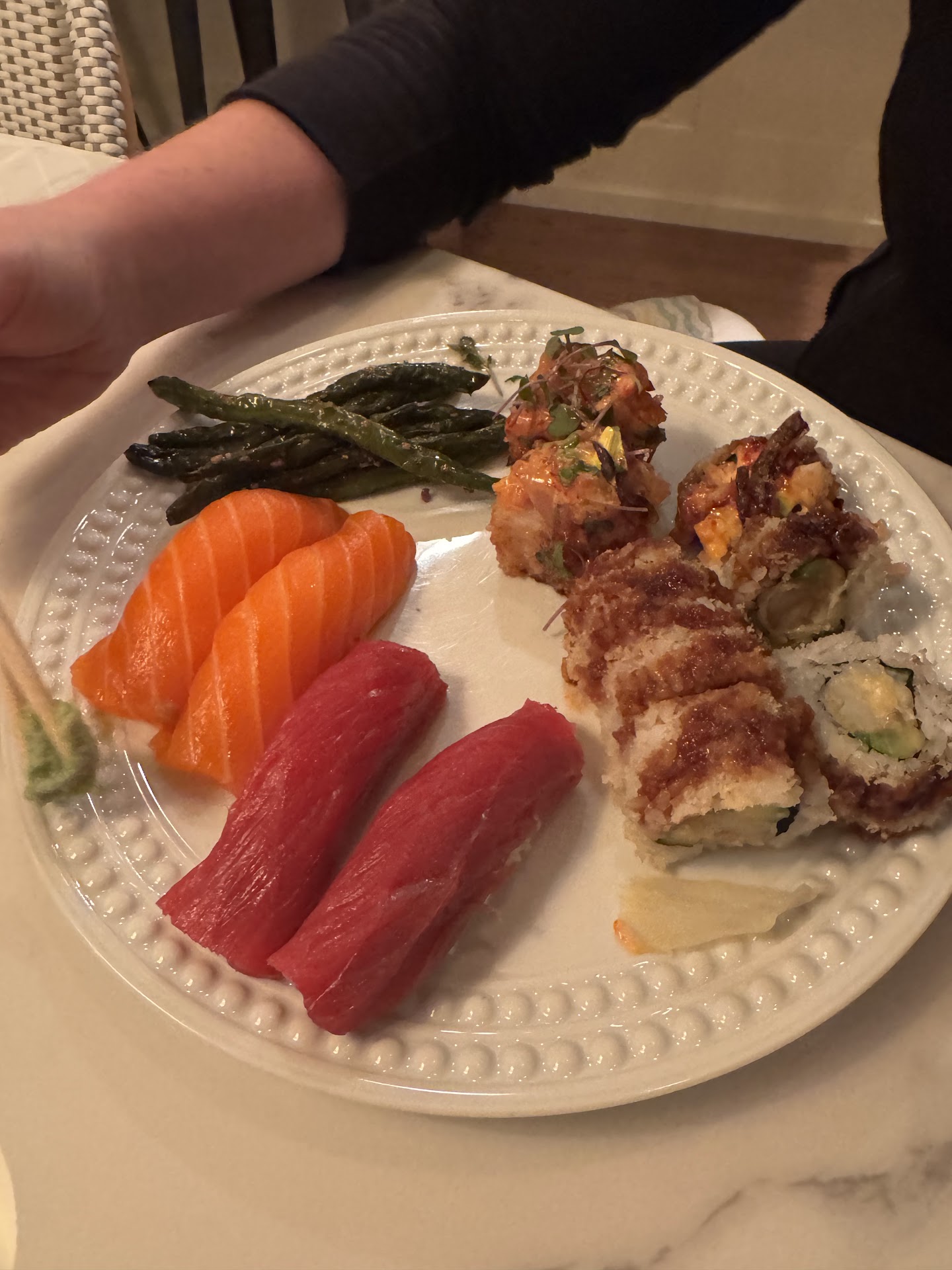 Price: When all was said and done, we spent about $45 per person. Collectively, we ordered four sushi rolls, two appetizers, a non-sushi dish (creamy chicken katsu) for our seafood averse friend, and two hot sakeās. The portions were huge- we ordered way too much for the four of us that were eating and had to make our other friends who were just there to visit eat some of it with us.