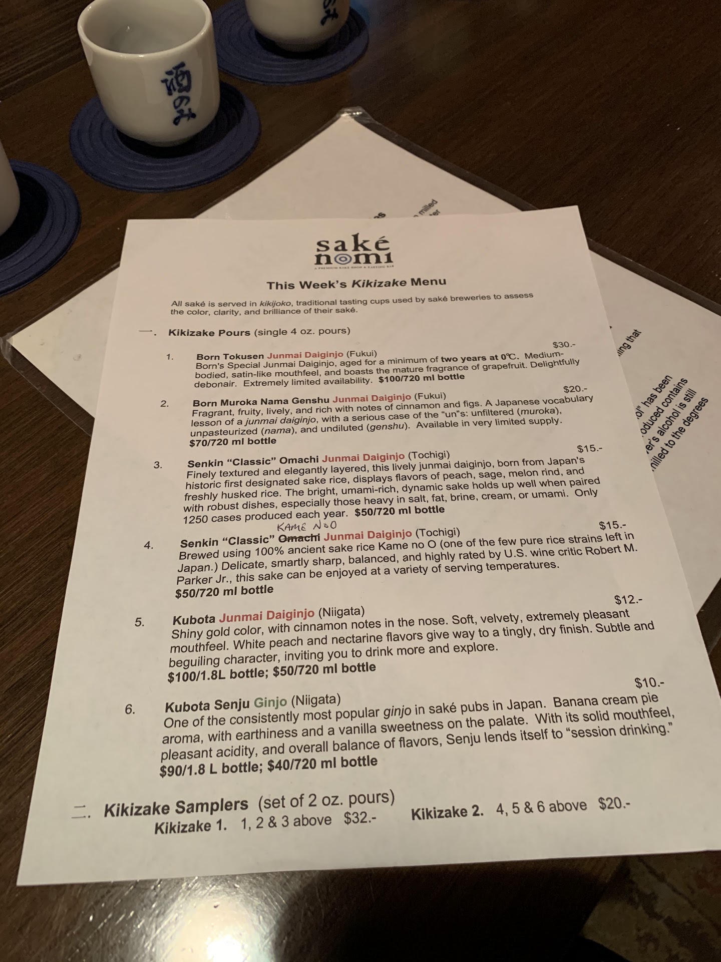 After talking to the worker at the bar about the type of sake I liked I decide on a sake and ordered. After tasting the sake it didn’t fit the flavor profile that I thought I had asked for.