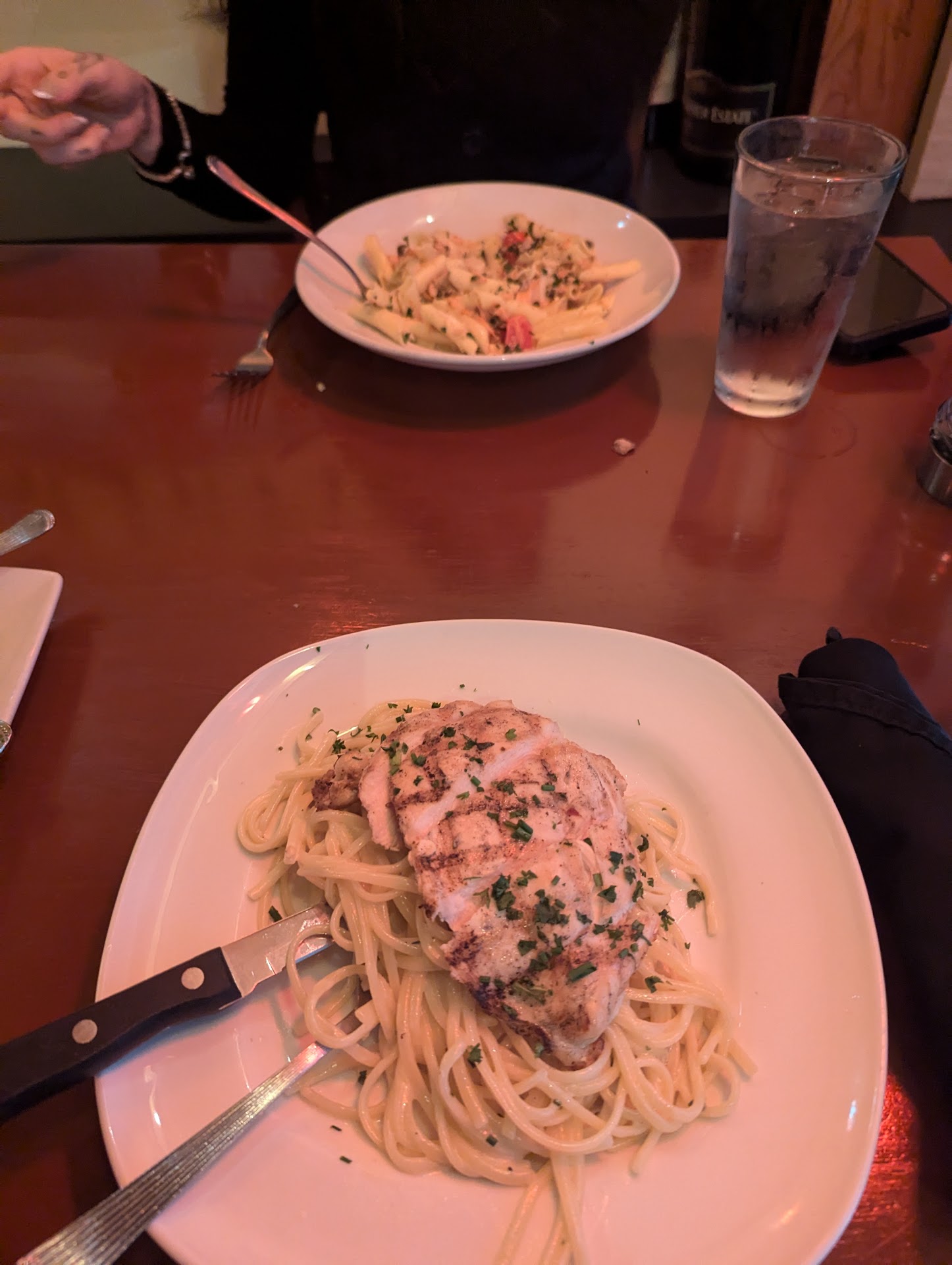The waiter was unfriendly with an attitude. Zero effort to please. I'm sure he could tell I wasn't happy, but never once gave me the chance to engage since he essentially rushed away and disappeared. We were left for over an hour with literally no one checking on us.