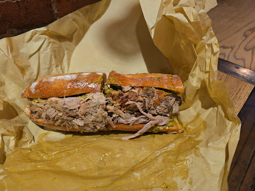 Read moreThe sandwich hype is real. It's an unassuming little joint that stays quiet until noon rolls around and all the hungry patrons line up for a delicious sandwich on their lunch breaks. There's quite a bit of seating inside, thankfully, and there's a public restroom with the code written on the wall. You order via a kiosk now, which is efficient, if a little impersonal. I wish they had Wi-Fi, as lunch spots like this tend to be great to pop open your laptop and get some work done, but alas. I got a porchetta sandwich, a grindhouse sandwich, and a chocolate-chip cookie.