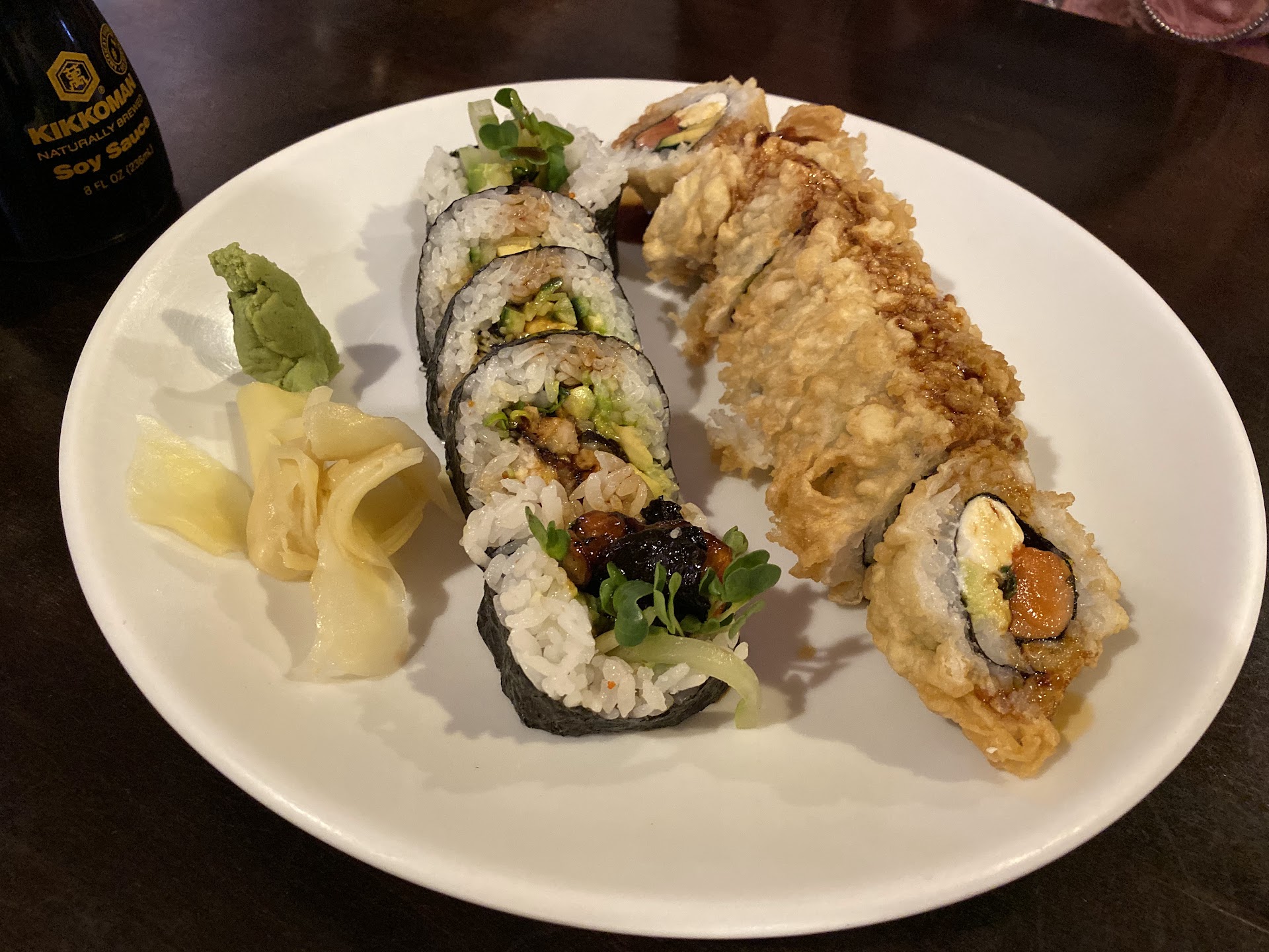 Read moreSmall, sushi restaurant squished between a coffee shop and cobbler. I wouldn't have thought to try it if I didn't see people constantly eating here. We arrive around 7 PM on a Saturday and it was busy, but we were still seated immediately. The staff was polite and brought our rolls out in about 10 minutes. The rolls were decent - we ordered the Crunch Roll, Seattle Roll, and Unakyu Maki. Unfortunately, our waiter seemed to have forgot the Crunch Roll, so it never arrived. The rolls were both large and tasty. The Unakyu didn't hold together very well and was difficult to eat. The flavor was OK, the barbecue eel tasted strange. The Seattle Roll was good. Good sushi spot, but there are cheaper and better tasting...