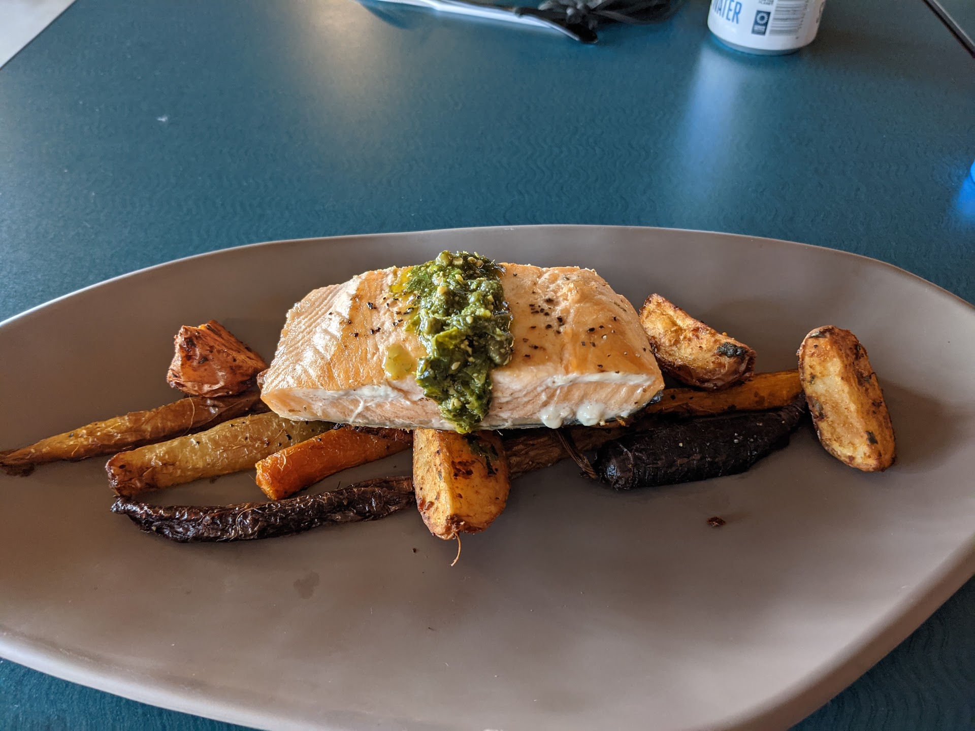 Read moreBRING A WATER BOTTLE, NO FREE WATER. I asked, and you must pay $4.50 for bottled water. They even refused to give me a cup to use at the drinking fountain. Big-time shake-down, very unclassy, especially since a lot of small children come to the Aquarium. Mean woman at the counter. Food was expensive, but tasty. Got fish & chips ($21) and vegan black bean burger ($17). You order at self-serve kiosk, they text when order is ready. Various cold items also for grab 'n go. Lovely dining area with views of the waterfront, also good number of outdoor tables. Too bad -- besides stingy water policy, this is...